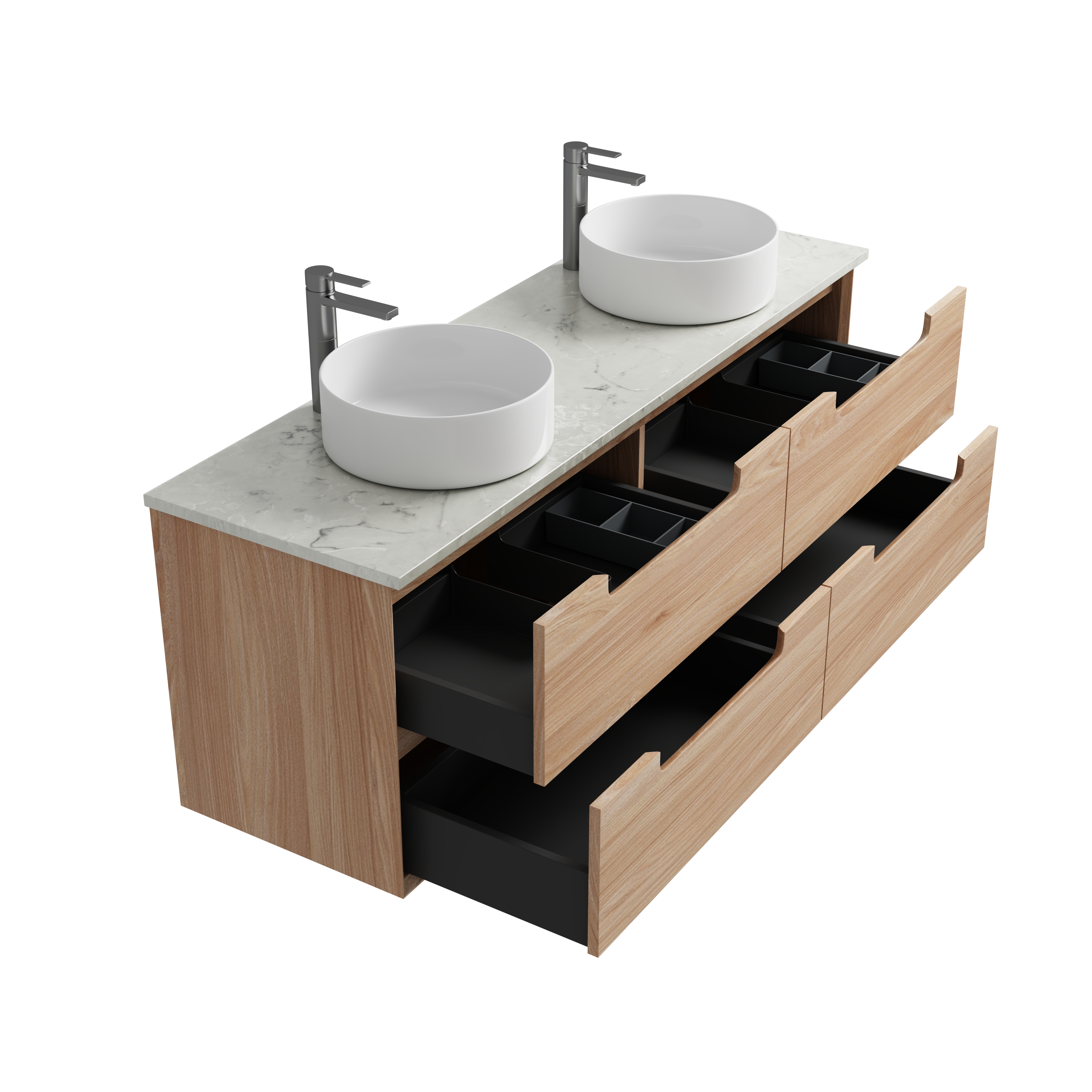 The Ainsley wall-hung vanity exudes modern elegance, boasting a sleek design that maximizes space. Its floating structure lends a contemporary feel, complemented by quality craftsmanship and versatile storage options. With clean lines and a minimalist aesthetic, it’s an ideal choice for stylish, space-conscious bathrooms.