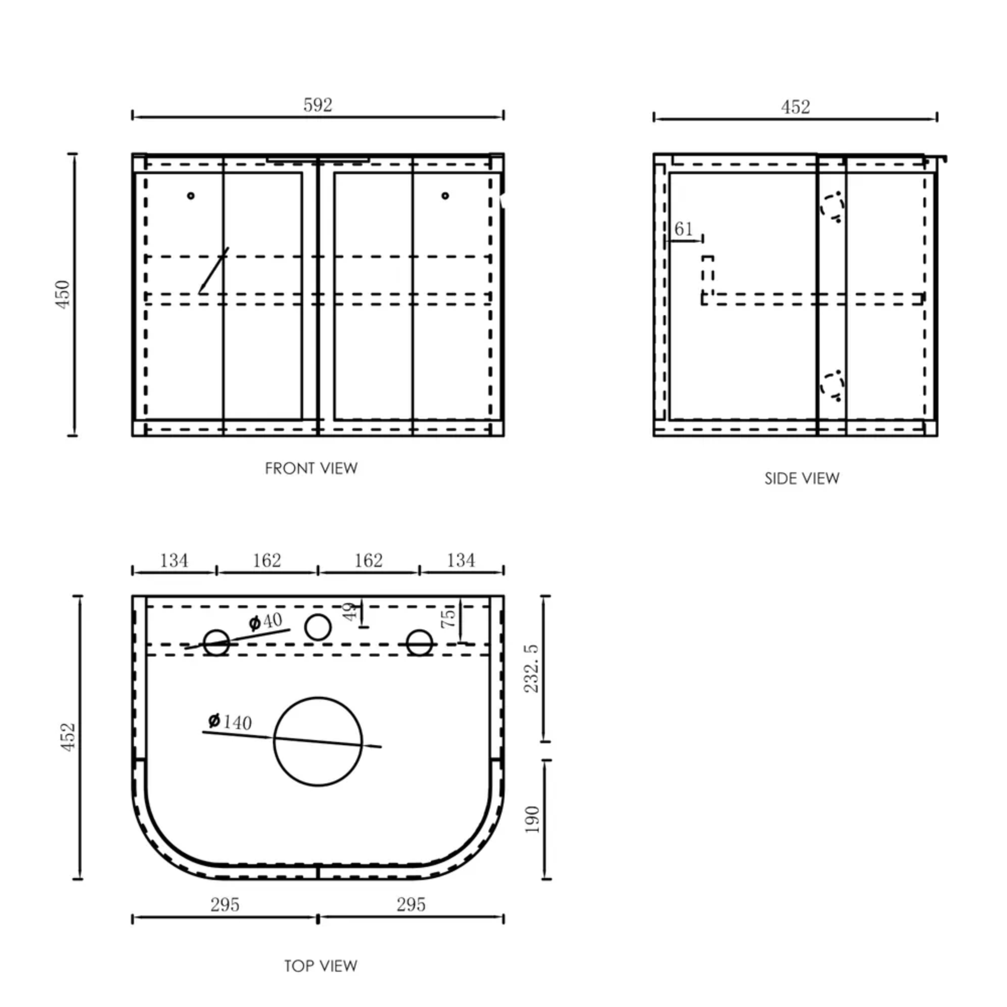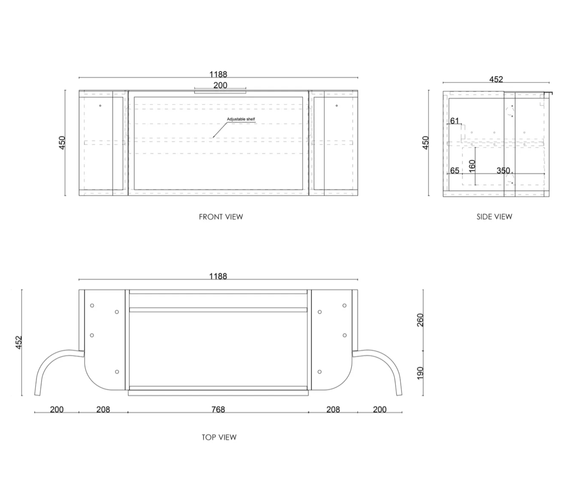 • Overall depth of 450mm
