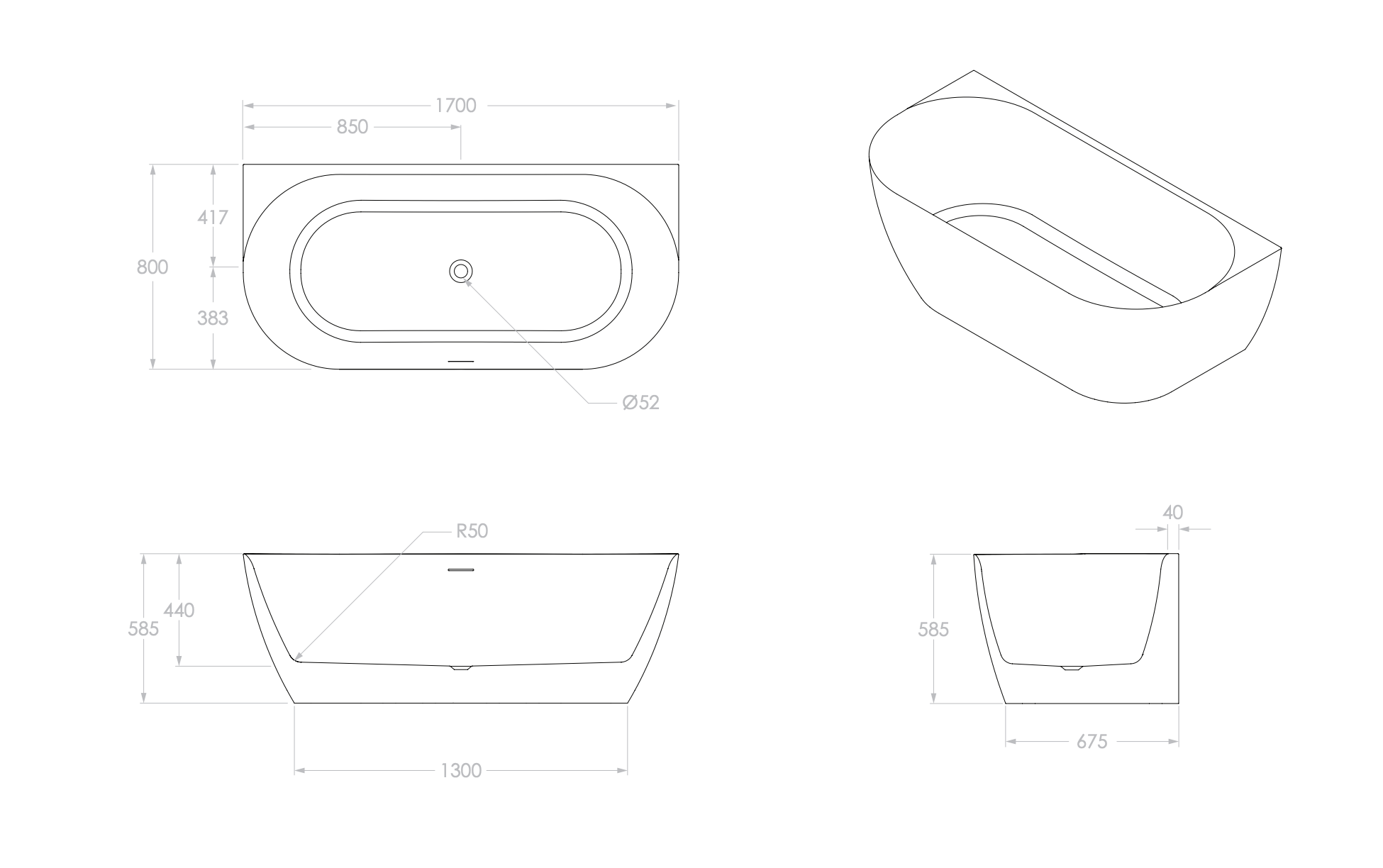Dimensions: 1700mm (L) x 800mm (W) x 585mm (H)