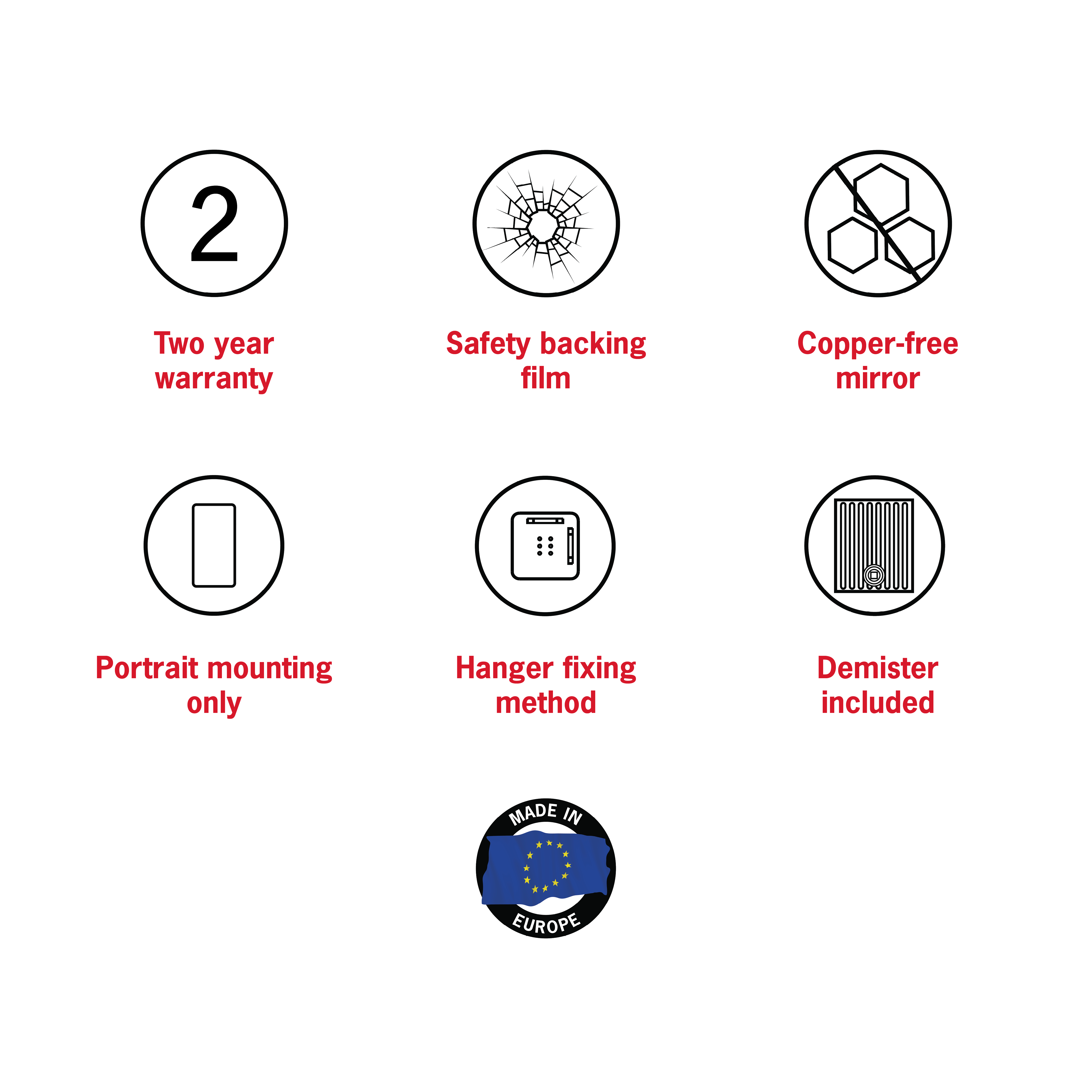 The Premium Back-Lit Mirrors are covered by a 3 Year replacement warranty. This covers the mirror and electrical components.