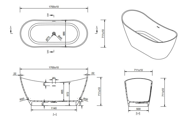 Elevate your bathroom oasis with the Kaskade Vicky Freestanding Stone Bath in elegant Matte White. Crafted with premium stone, this luxurious bathtub provides a deep and relaxing soak, while its freestanding design adds a touch of sophistication to any space. Indulge in a spa-like experience every time you bathe.