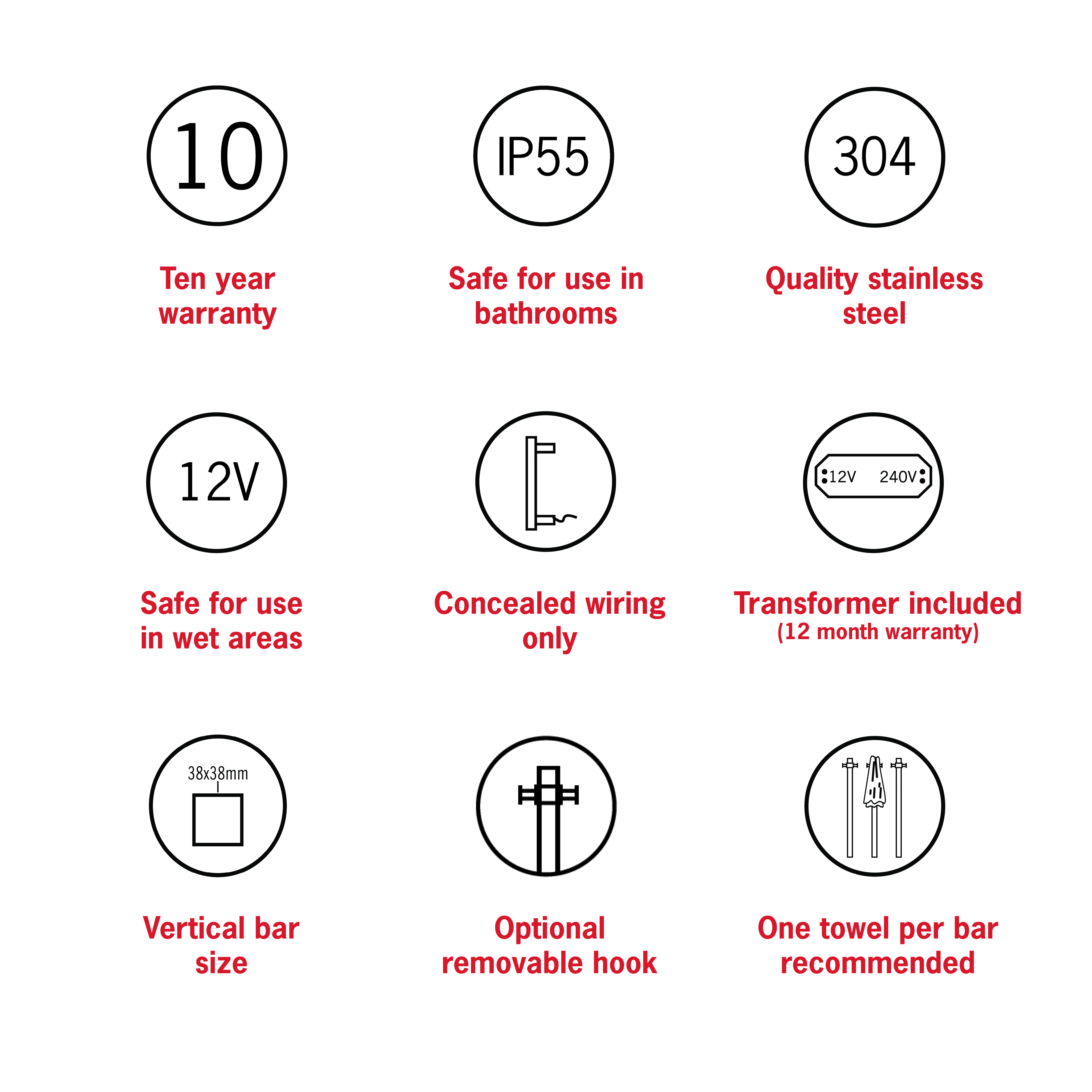 Product: Square Single Bar Heated Towel Rail