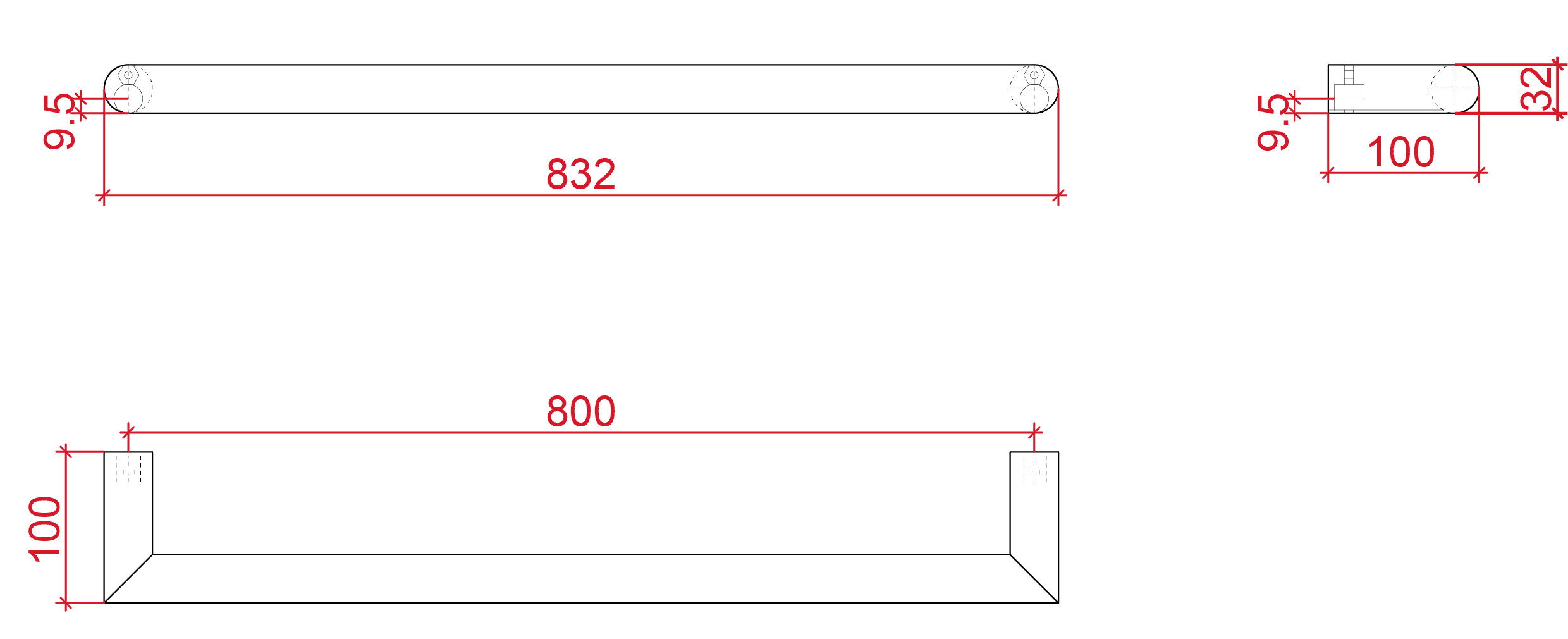 Dimensions: 832mm (W) x 32mm (H) x 100mm (D)