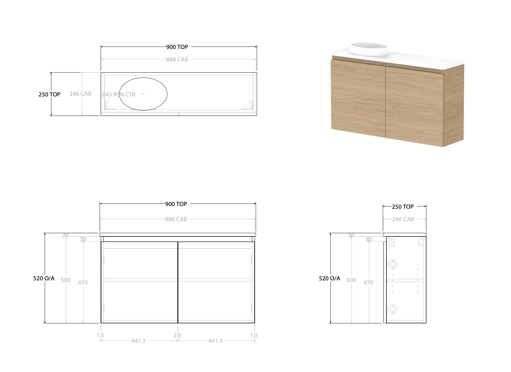 • Glacier Mini Wall Hung Vanity is available in 400mm, 600mm and 900mm lengths