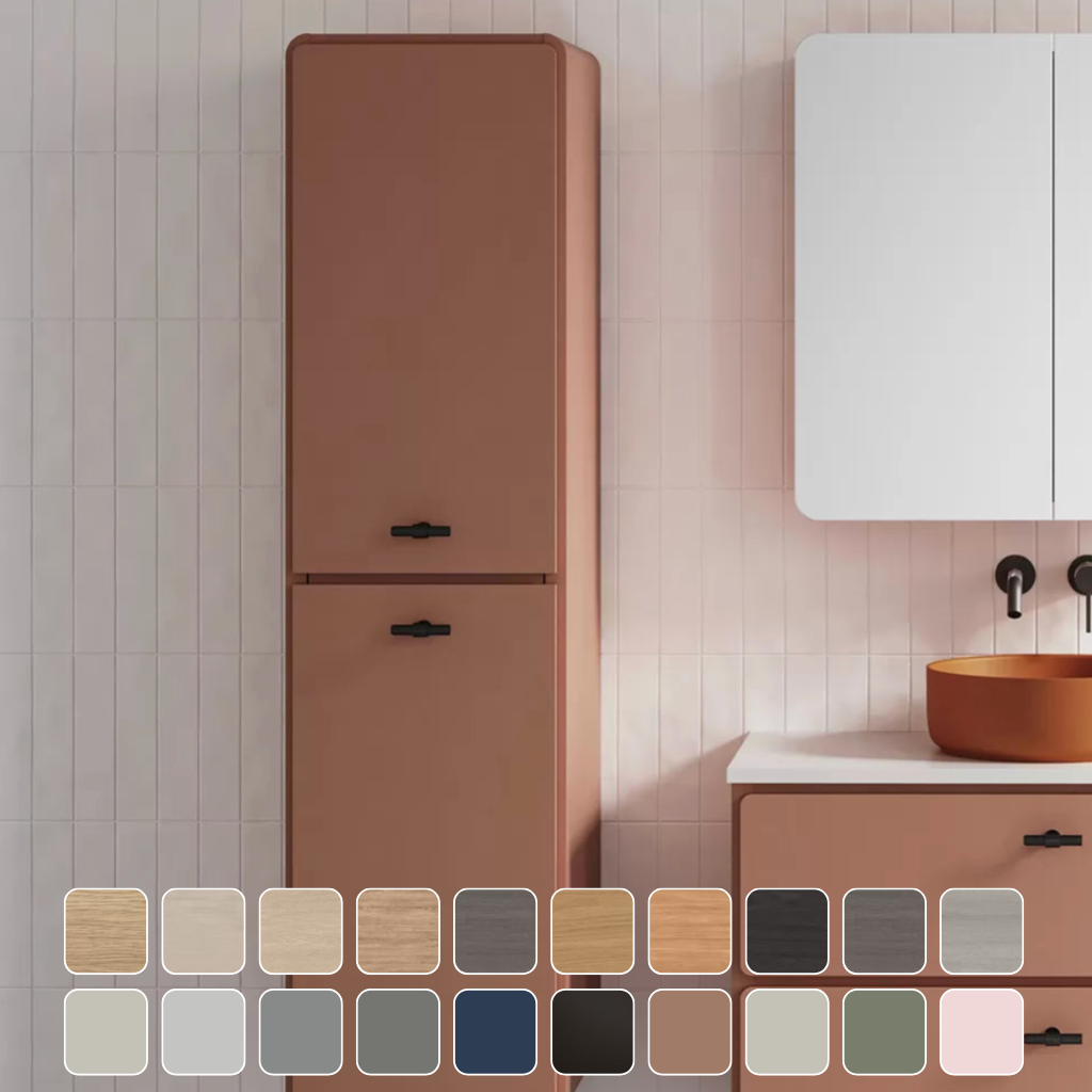 Elevate the aesthetic of your bathroom with this exquisite tallboy, crafted to effortlessly complement the Colby vanity. Sleek and contemporary, its elegant curved doors exude a sense of sophistication while providing ample storage space. Enhance your bathroom's modern ambiance with this practical and stylish addition.