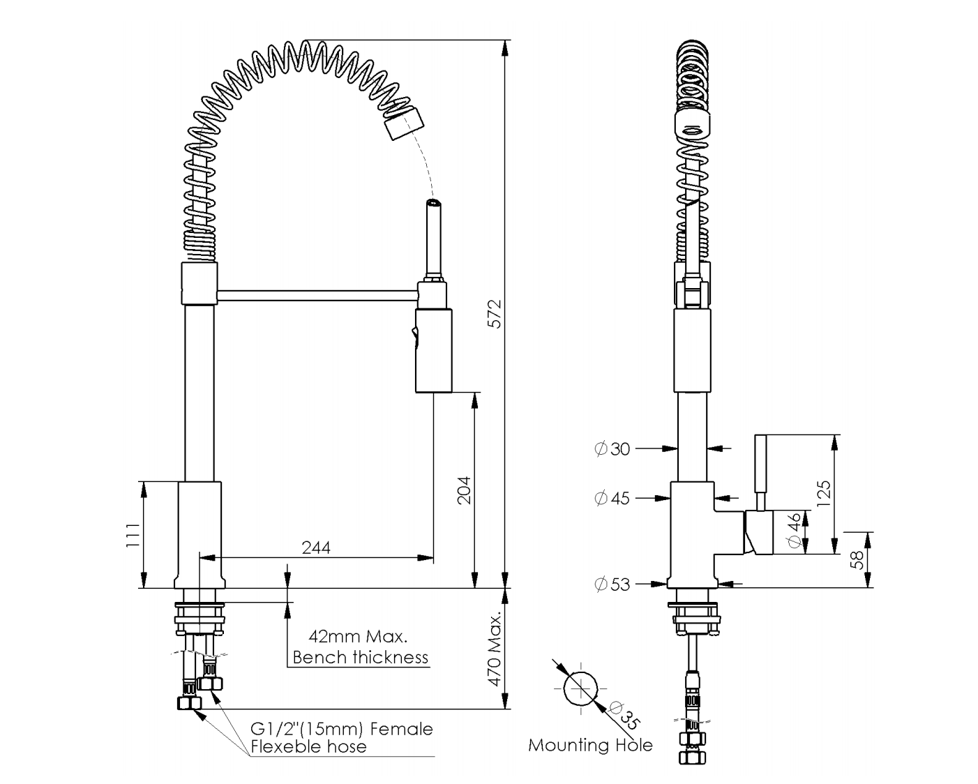 Made from solid 304 Grade Stainless Steel, this mixer is ideal for both inside and outside the home. Suitable for mains pressure applications.