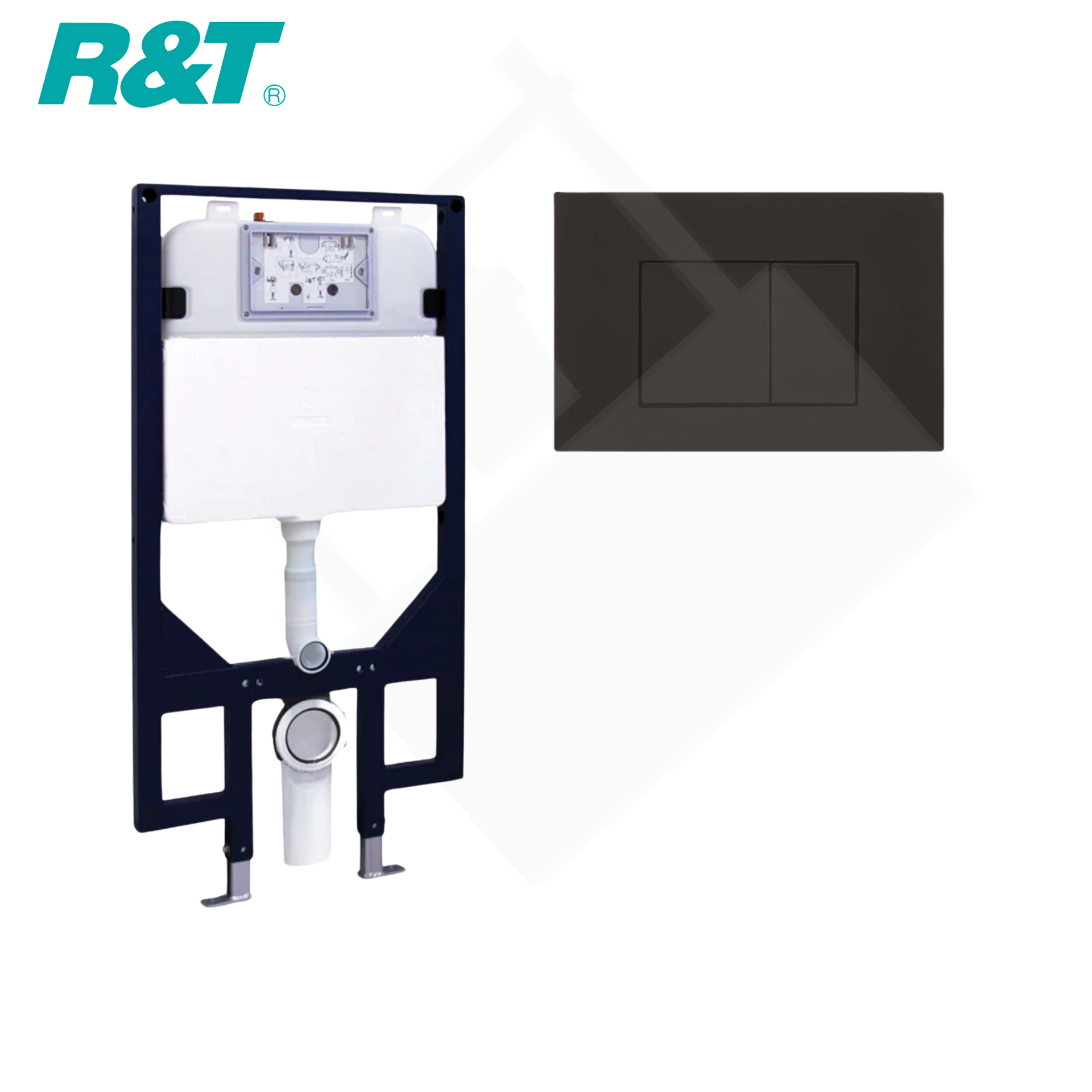 Elevate your bathroom experience with the R&T Concealed Cistern for Wall-Hung Pan. Available in Chrome, Black, or White with a sleek push button, this premium addition exudes sophistication and luxury.