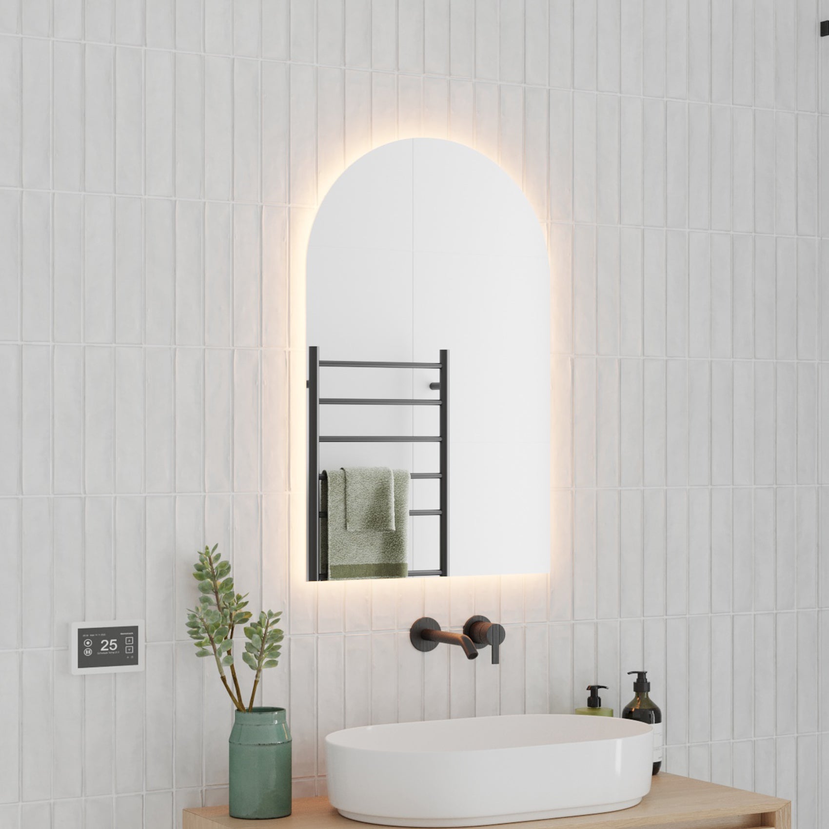 Create a truly unique and modern statement in your bathroom with the Thermogroup Ablaze Arch Shape Premium Backlit Mirror. This mirror is made-to-measure for your individual design and space, allowing you to tailor it to perfectly fit your needs. With its sleek and modern design, the Ablaze Backlit range provides a luxurious ambience to any bathroom.