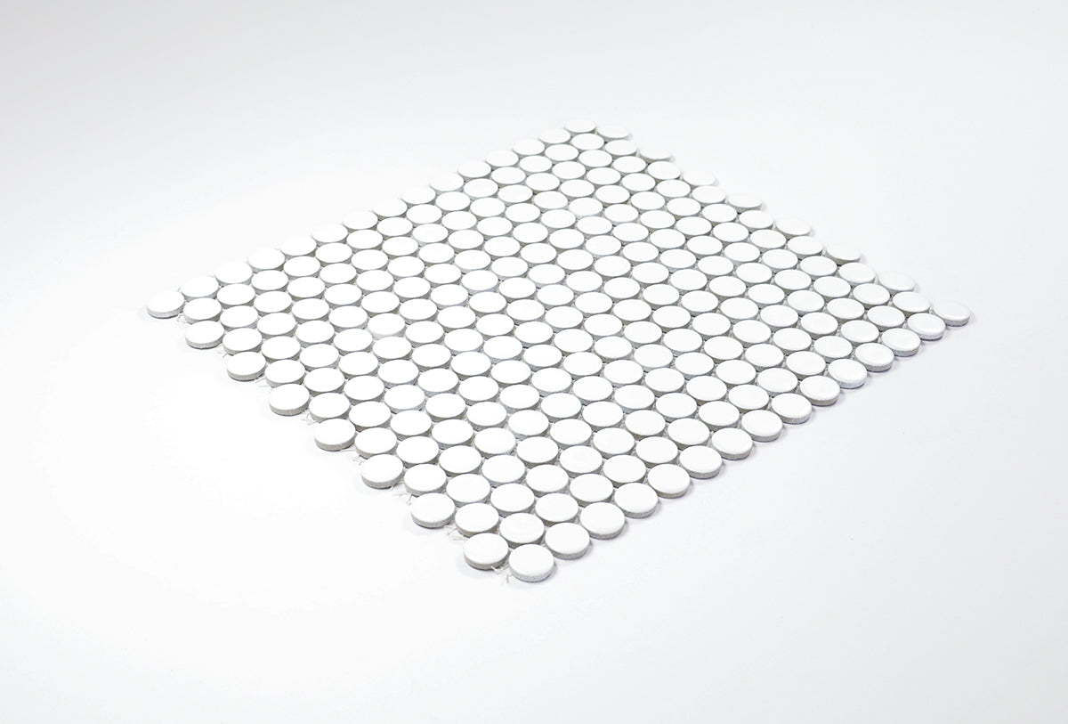 Product: Bindi White Matt Penny Round Mosaic Tile