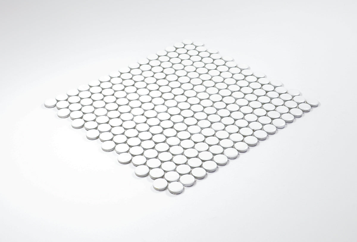 Product: Bindi White Gloss Penny Round Mosaic Tile
