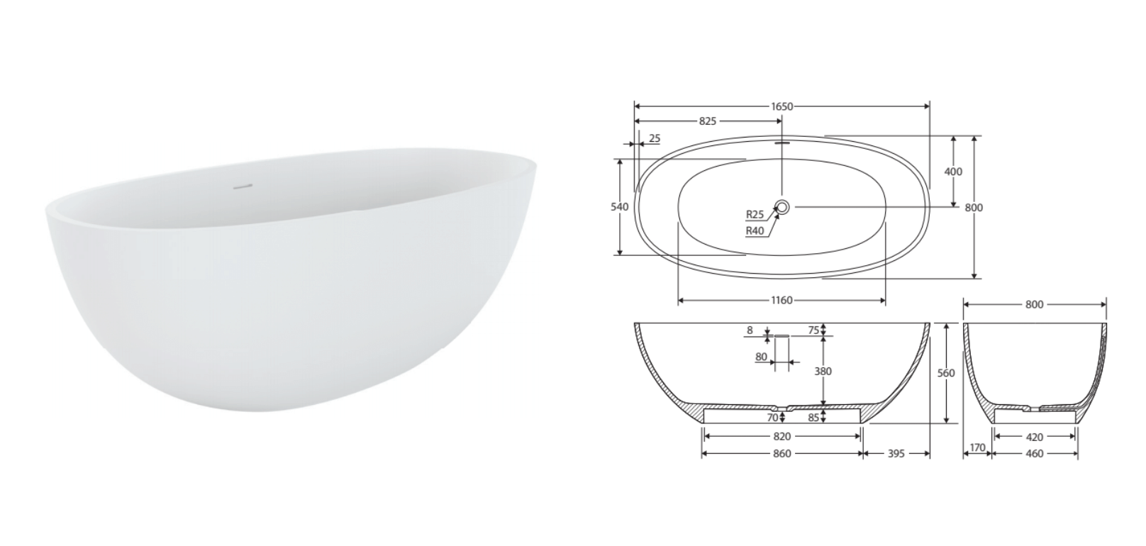 Elevate your bathing experience with the luxurious Fienza Sasso Freestanding Stone Bath. Crafted from high-quality stone and finished in a sleek matte white, this 1650mm bath exudes sophistication and exclusivity. Indulge in a sensory-filled soak, surrounded by the artful design and lavish comfort of the Sasso.
