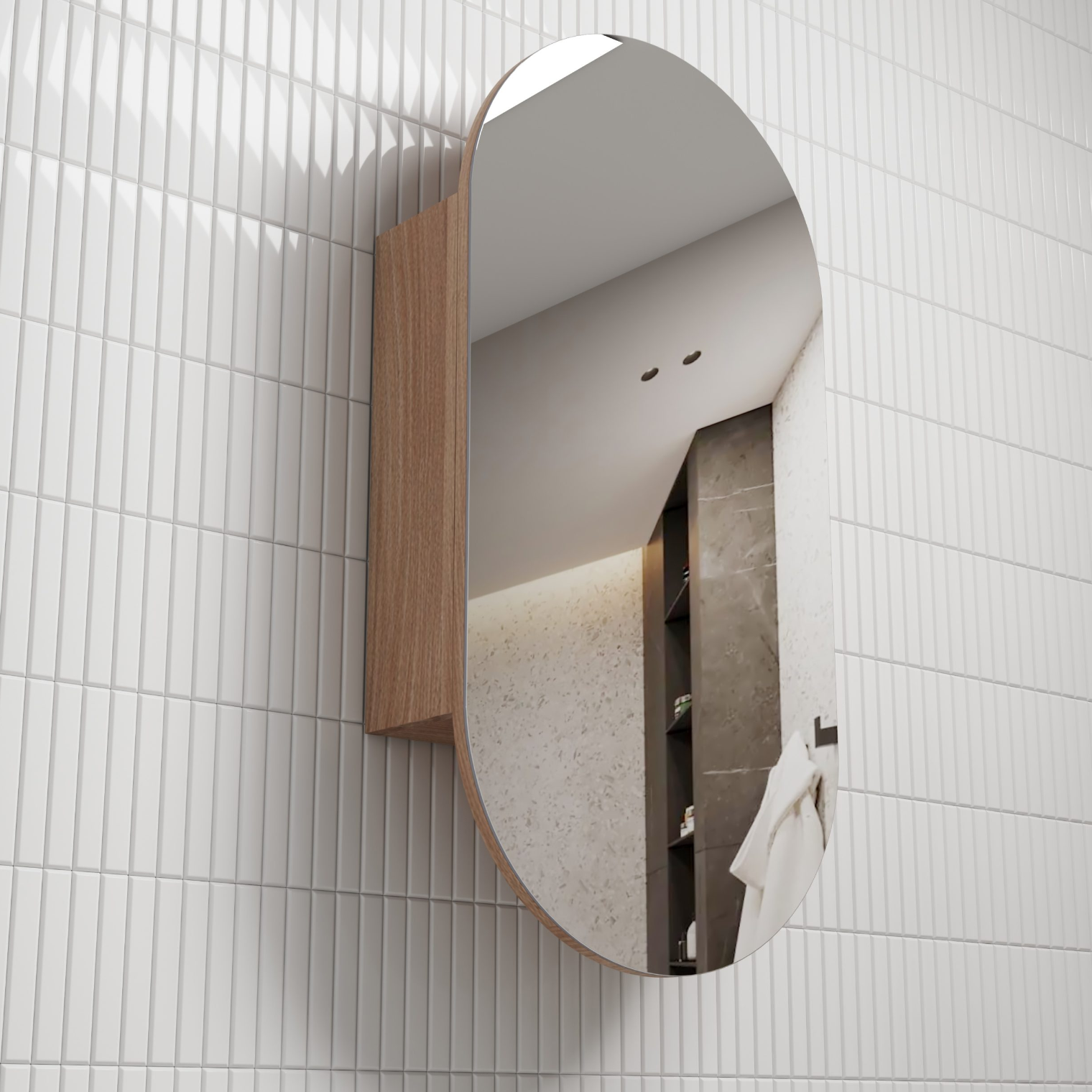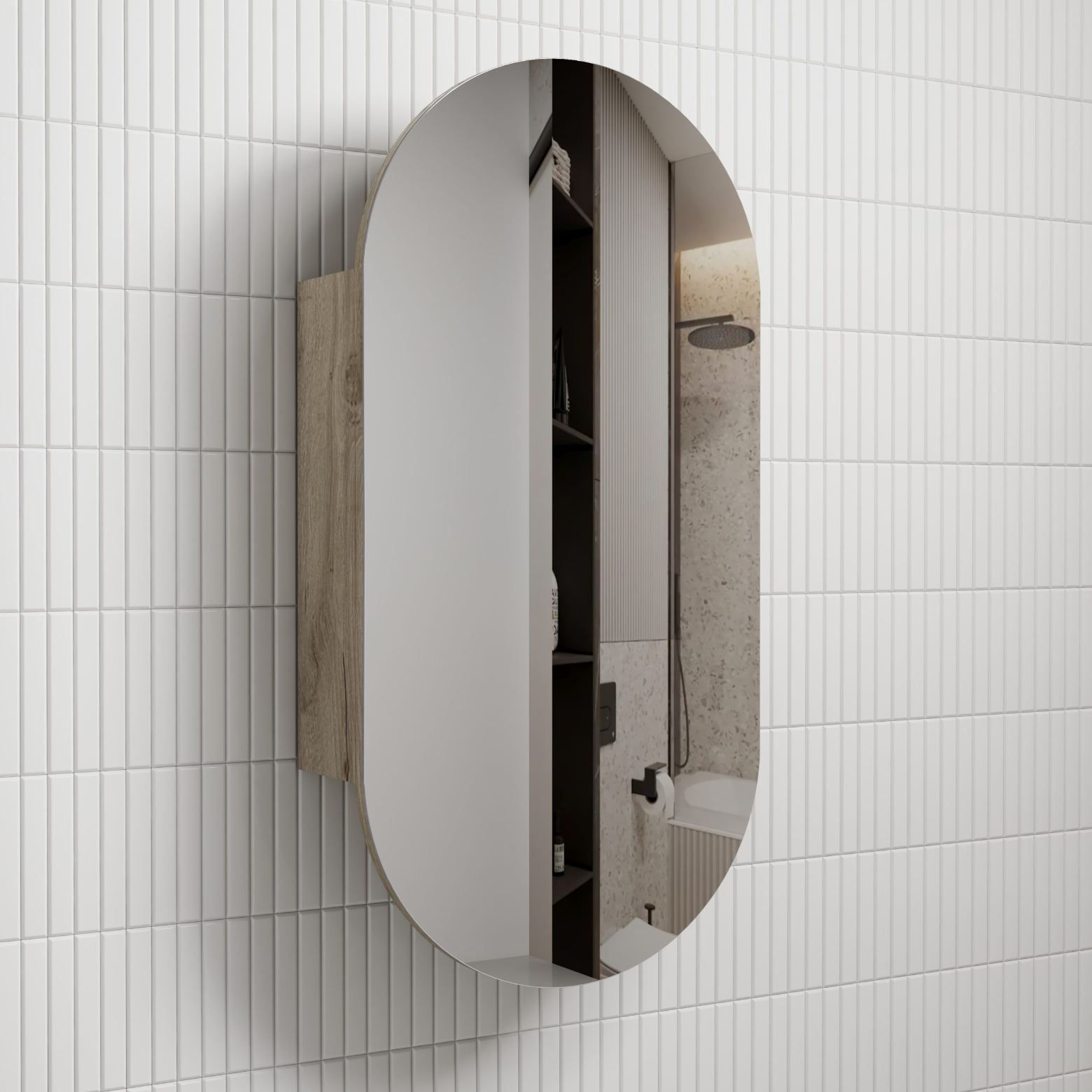 Enhance your grooming and makeup routine with the Beau Monde Shaving Cabinet. Its pill-shaped design and integrated organizer exude modern sophistication. The sleek lines provide a chic touch, while the ample storage and specialized organizer add both contemporary aesthetics and functional elegance. Elevate your bathroom with this exquisite cabinet.