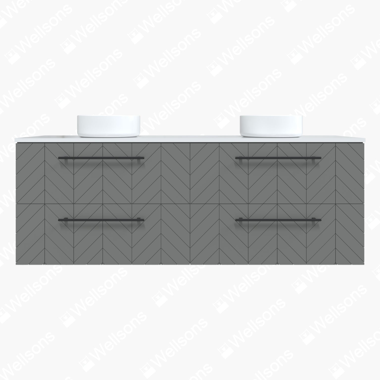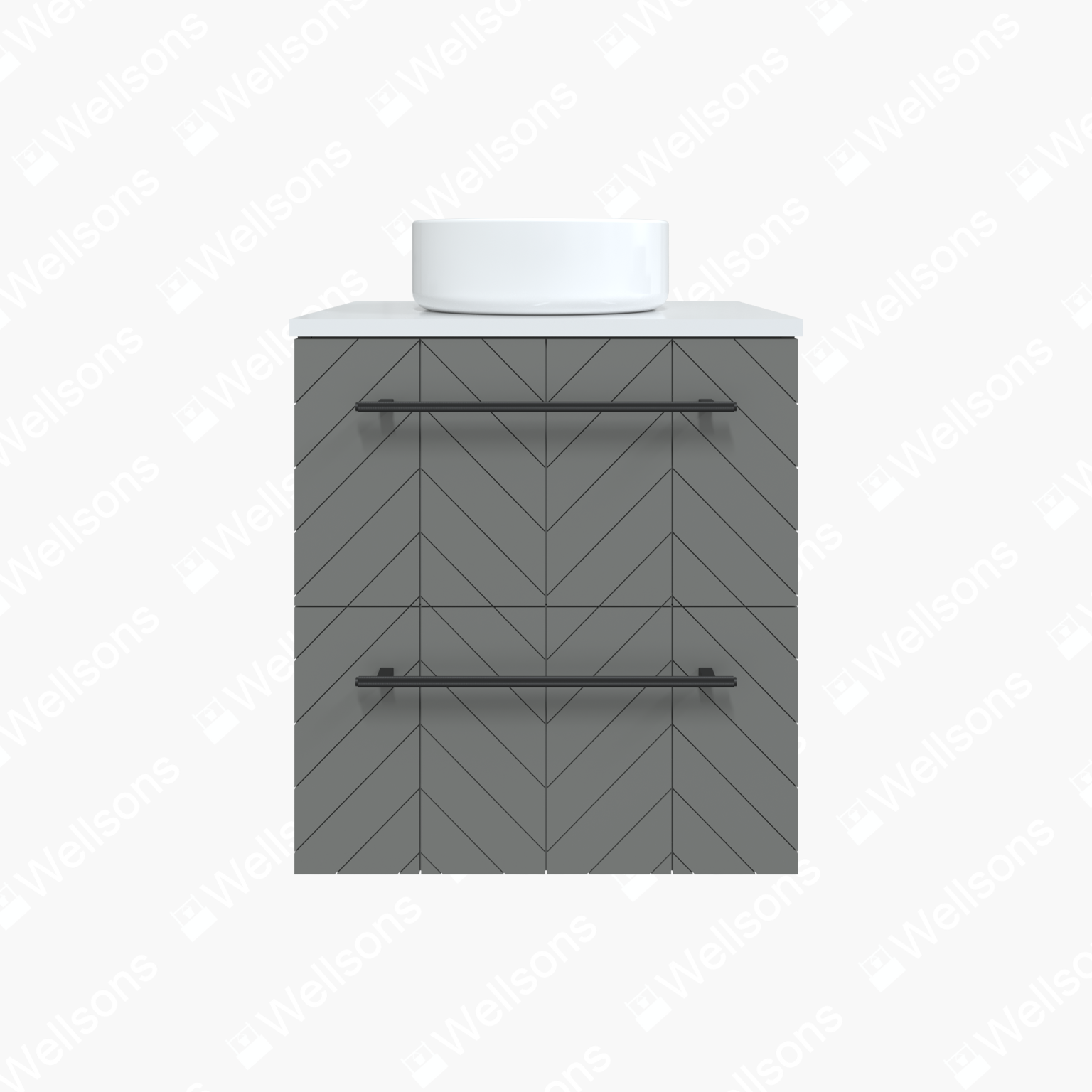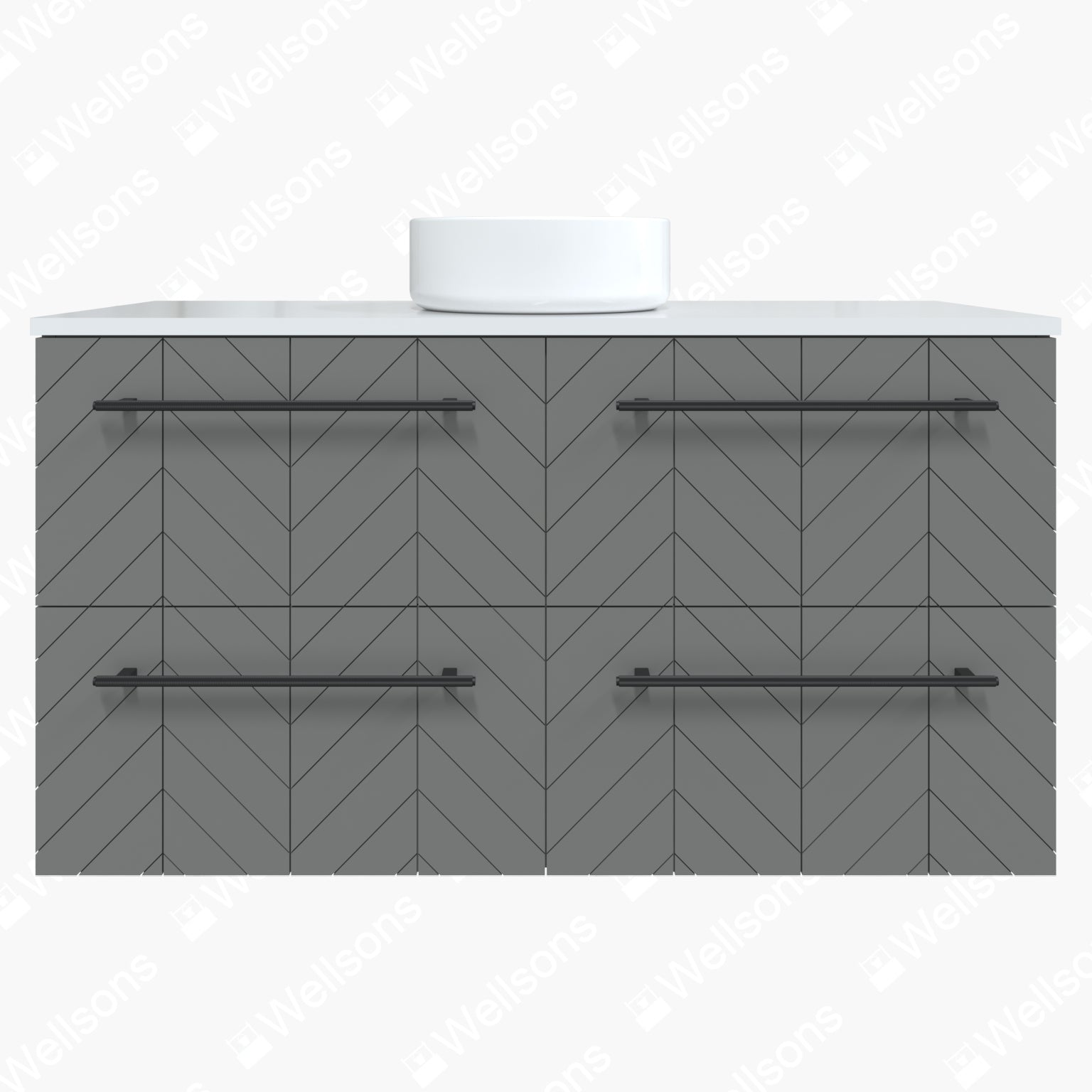 Product: Timberline Sutherland House Caprio Wall Hung Vanity with SilkSurface top and White Gloss Ceramic Above Counter Basin