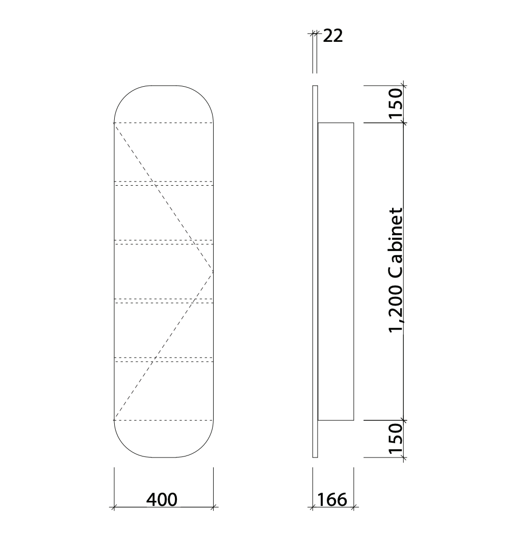 Dimensions: 1200mm (L) x 400mm (W) x 166mm (D)