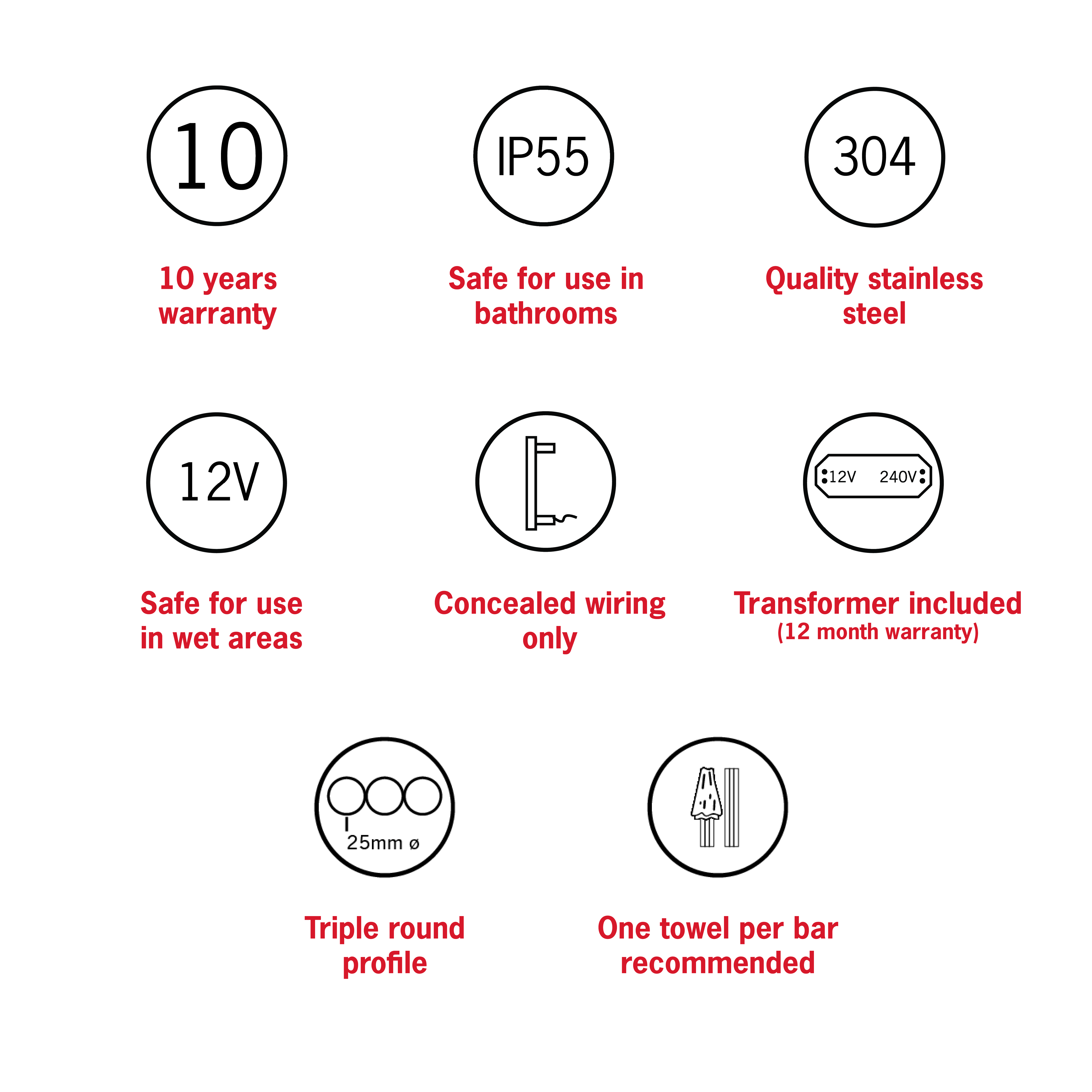 Introducing the Thermogroup Triple Tube Vertical Single Heated Towel Rail. Indulge in affordable luxury for your bathroom with this elegant, polished stainless steel rail. The unique triple round profile adds a modern touch while effectively drying and warming your towels. Upgrade to the sophisticated comfort and design of Thermorail.