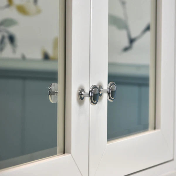 -Chrome Knob Handles come included free with this mirror shaving cabinet.