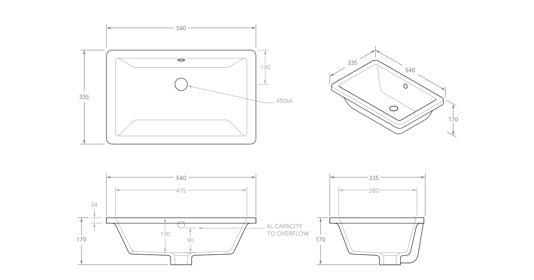 Dimensions: 540mm (L) x 335mm (W) x 170mm (H)