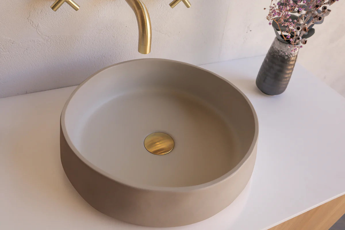 The Nood Co Mill Basin Wall Hung is a unique, hand-spun and organic piece with natural patina, colour variation, and surface holes providing an imperfect yet visually appealing product. Its concrete material will gain character and develop over time to become its own unique masterpiece.