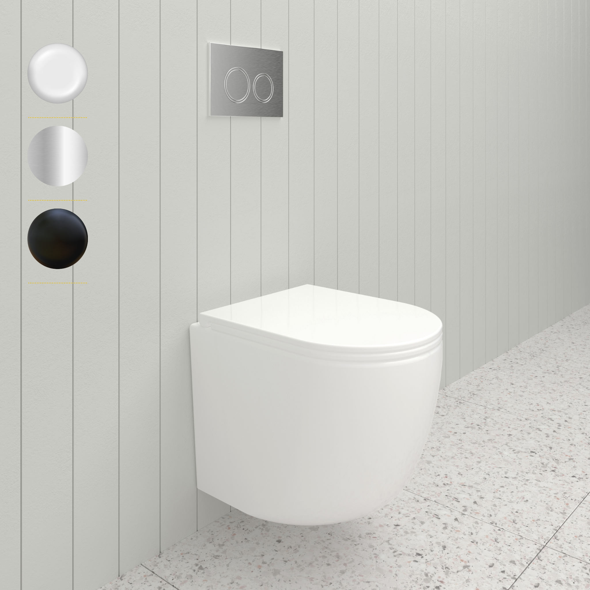 Introducing the Nortono Wall Hung Toilet Pan in Gloss White. Our toilet uses Quiet Flush technology to reduce noise and provide a peaceful experience. With a highly efficient flushing system and dual-flush options, it's also eco-friendly. Say goodbye to noisy disruptions and hello to sustainable, clean and tranquil bathroom environments.