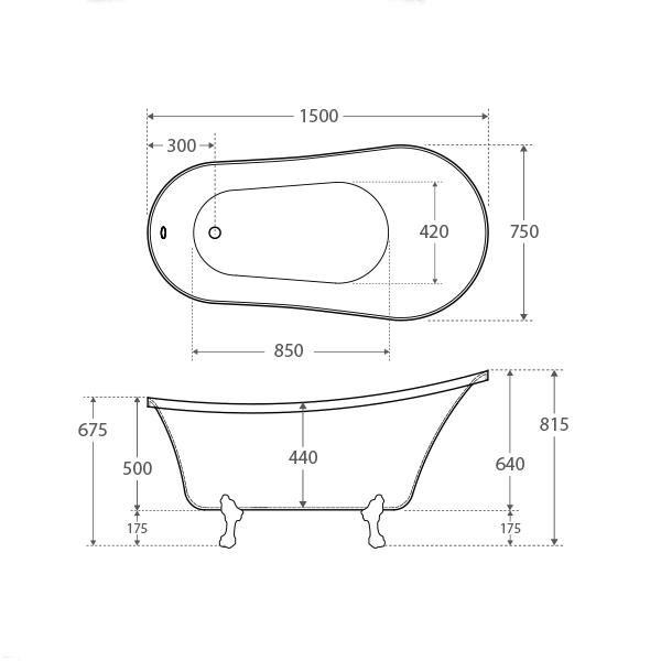 Dimensions: 1500mm or 1700mm (L) x 750mm (W) x 815mm (H)