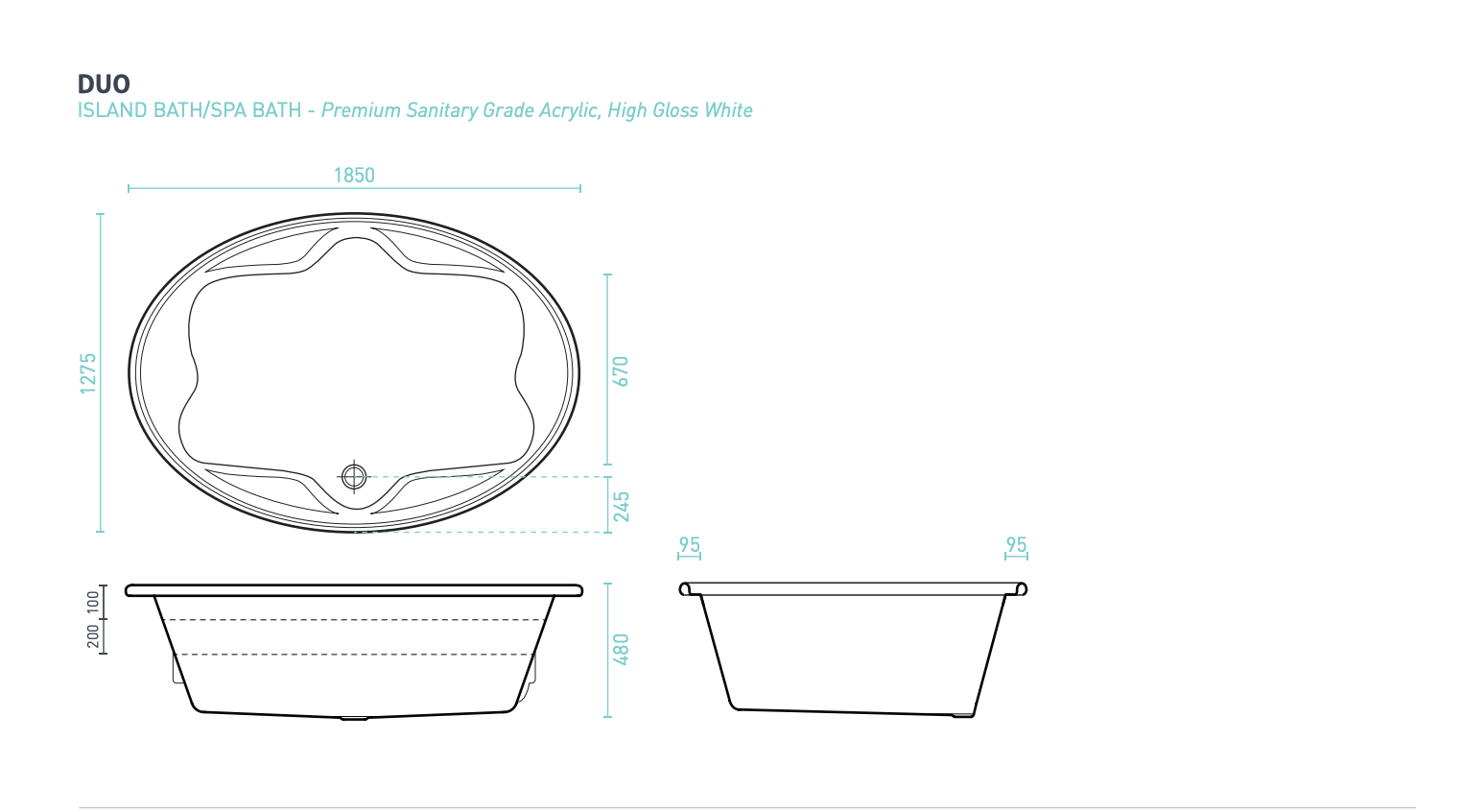 Decina Duo Contour 16 Jet Spa Inset Bath 1850mm - Gloss White