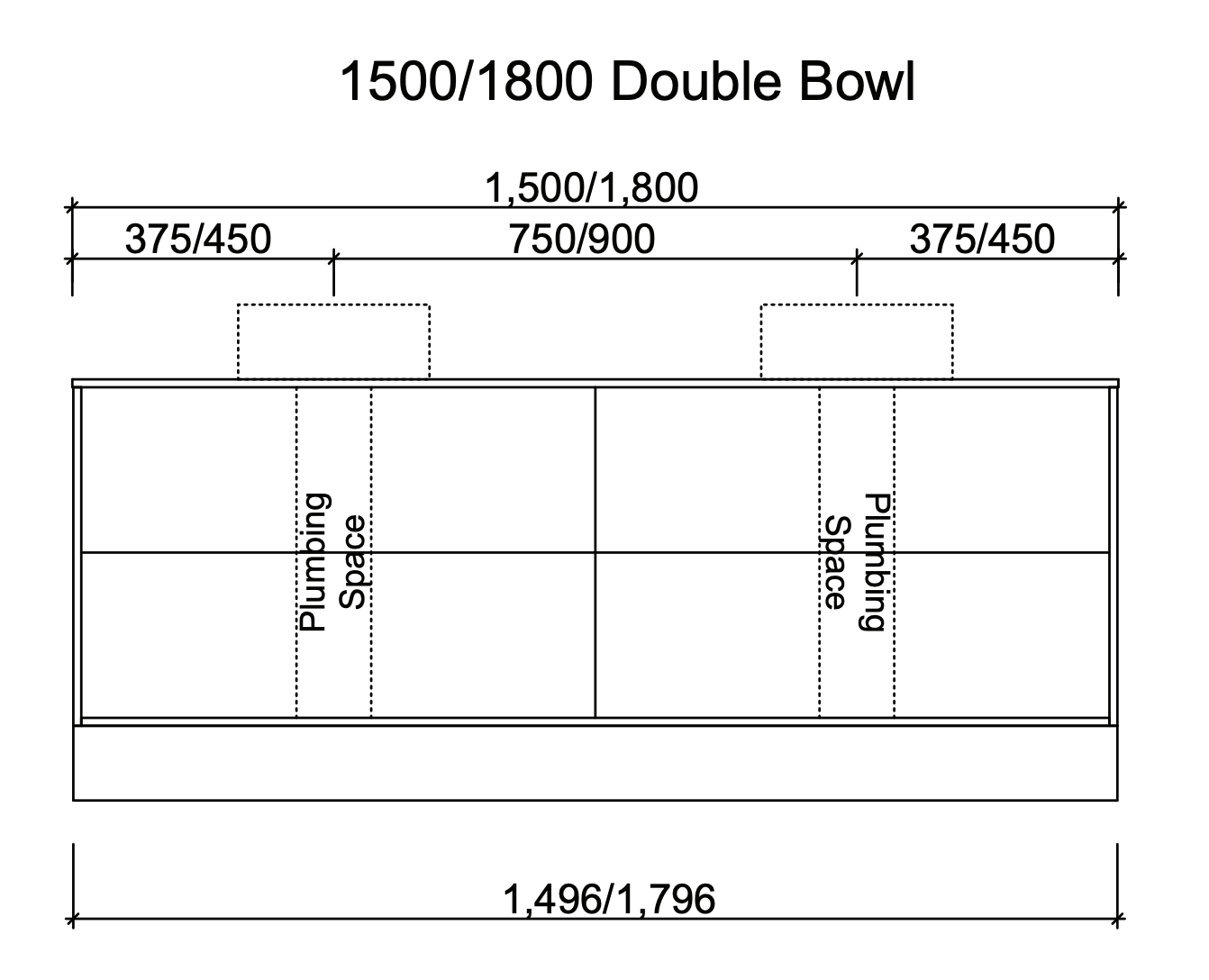 • Choose from vanity lengths of 600mm, 750mm, 900mm, 1050mm, 1200mm, 1500mm or, 1800mm options