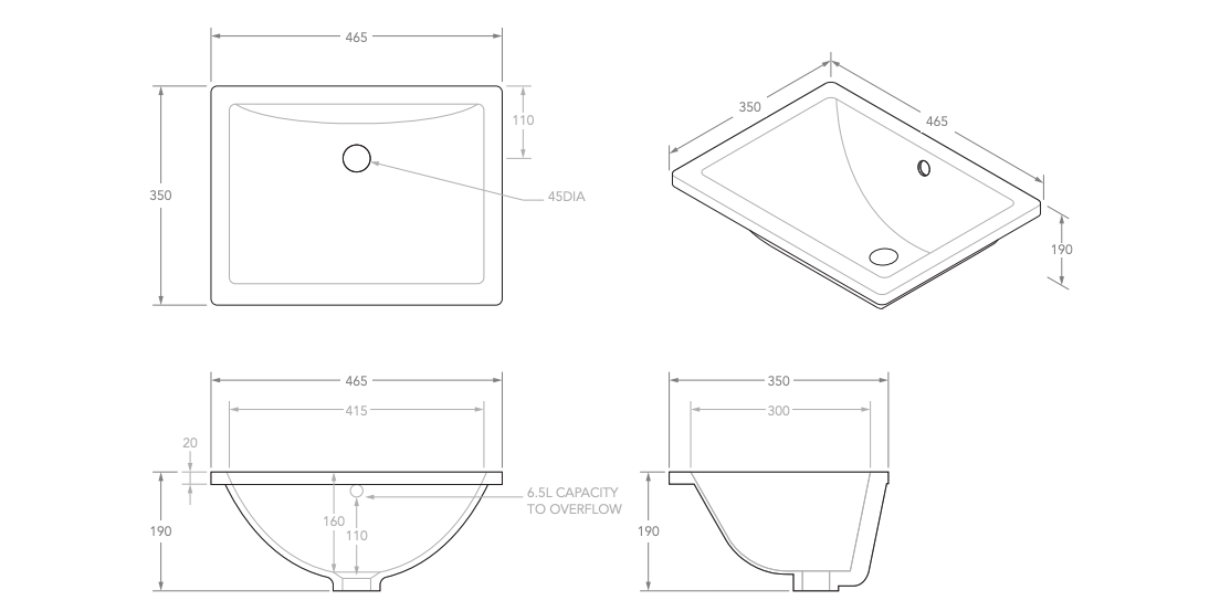 Dimensions: 465mm (L) x 350mm (W) x 190mm (H)