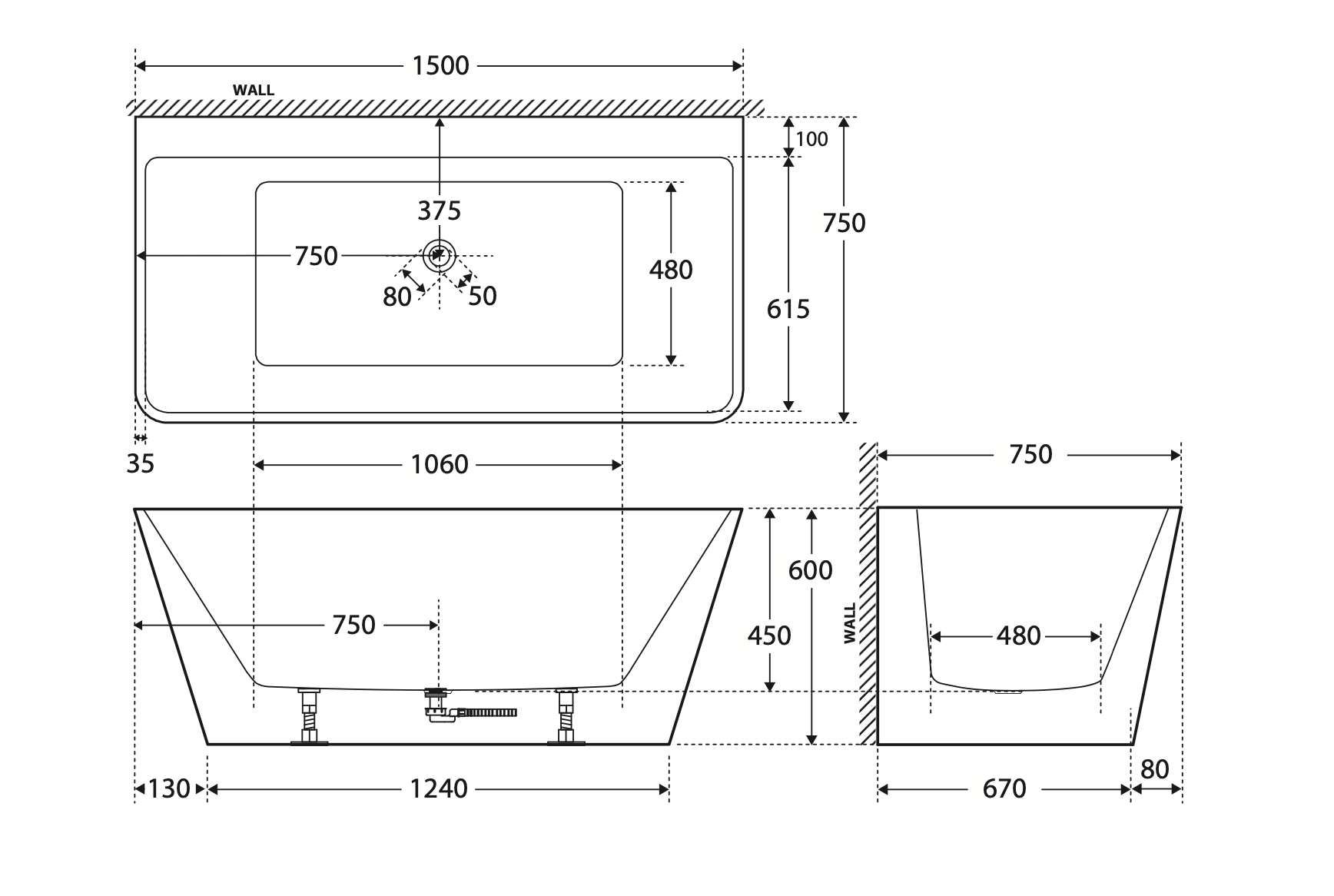 Dimensions: 1500mm (L) x 750mm (W) x 600mm (D)