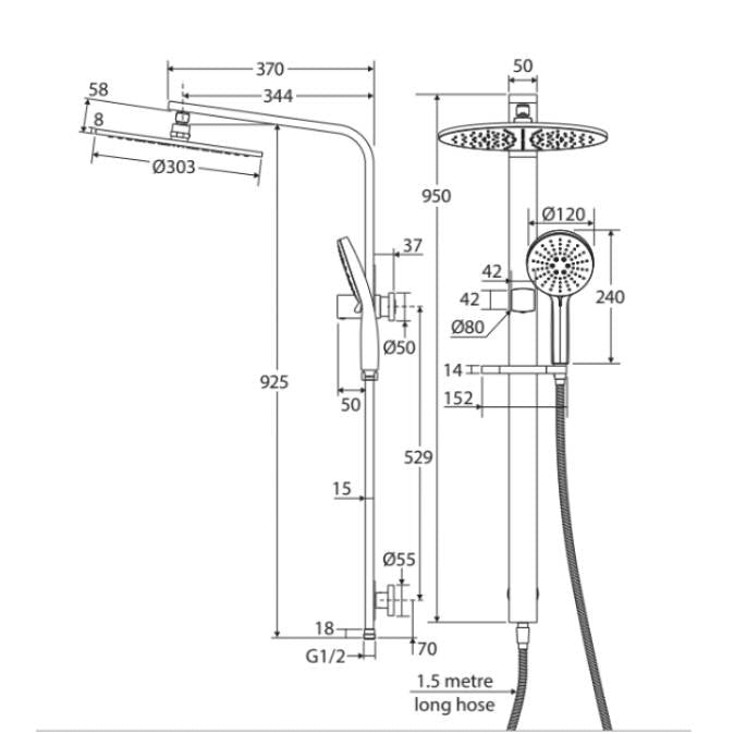 -1.5 metre flexible stainless steel hose (PVC on matte black model)