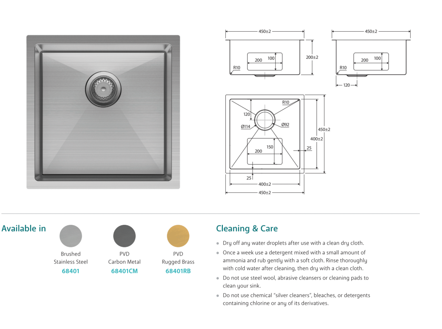 Fienza Hana 32L Single Kitchen Sink, PVD Carbon Metal