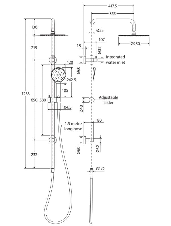 -Slider to adjust height and angle of hand shower