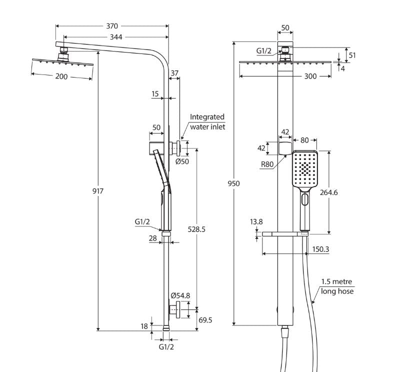 The Fienza Tono Deluxe Twin Shower is a modern soft-square combo with a sleek matte black finish. This shower system includes a combination rail for increased versatility and an overhead-mounted shower for a truly luxurious shower experience. Perfect for modern bathrooms.