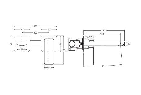 The Fienza Tono Square Plates Outlet, Basin/Bath Wall Mixer Set features a modern styling that complements a variety of bathroom decors. The set comes with a soft-square outlet and small square backplates in a brushed nickel finish for a sleek, cohesive look.