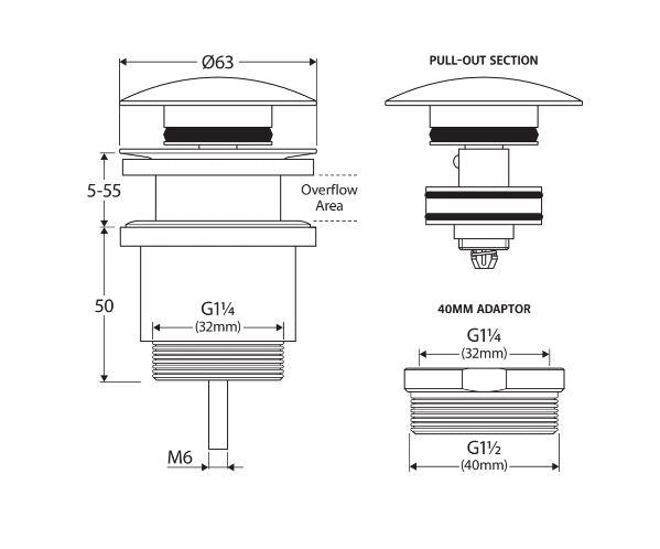 -Convertible for use with or without an overflow (overflow adjusted by centre screw)