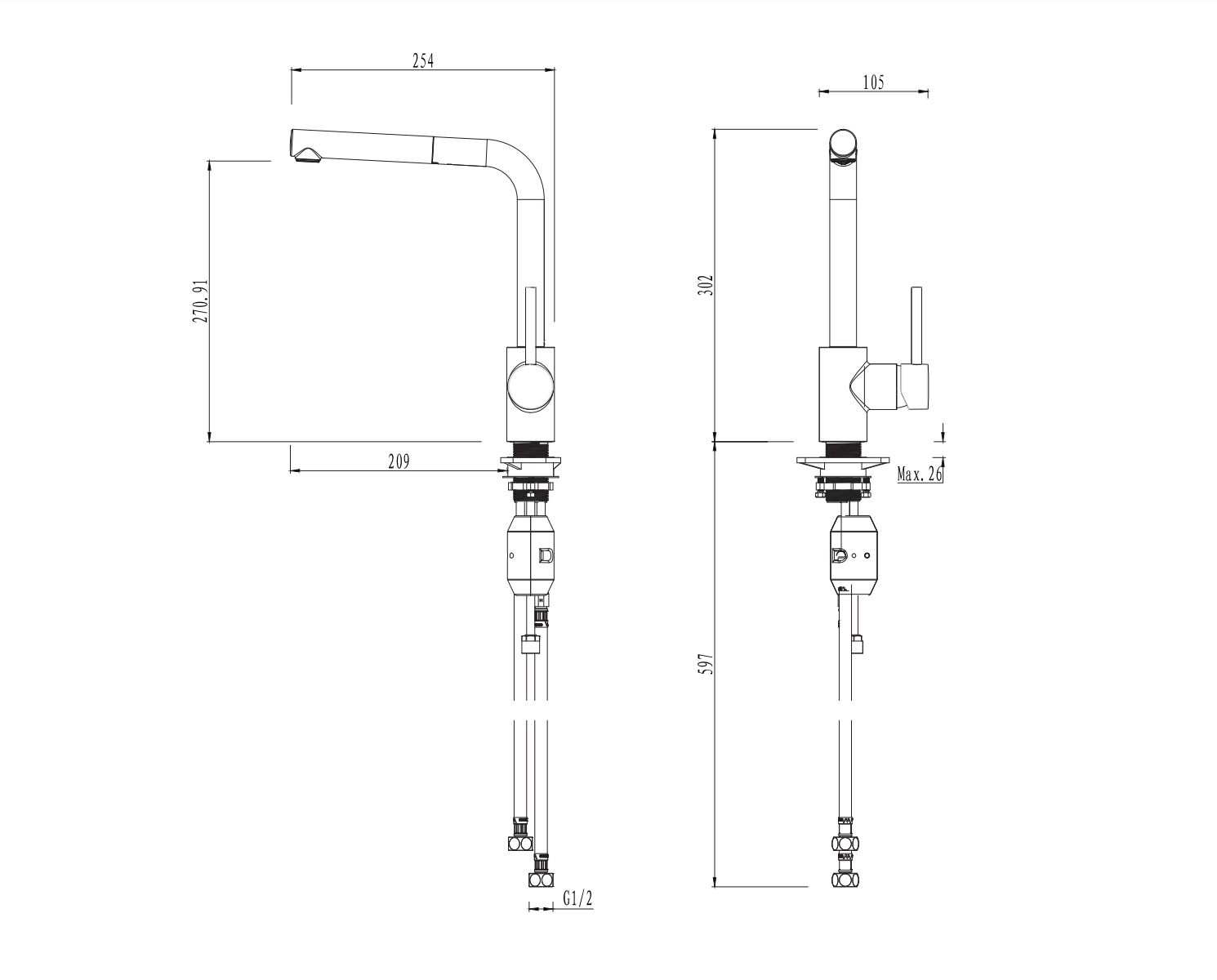 The Gareth Ashton Lucia Pull Out Mixer in Chrome combines timeless elegance with everyday functionality. Featuring a distinctive circular design element that unifies the range, this mixer offers a sleek, sophisticated look while providing practical pull-out convenience for versatile kitchen use. Its refined finish and thoughtful design make it a perfect addition to any modern kitchen.