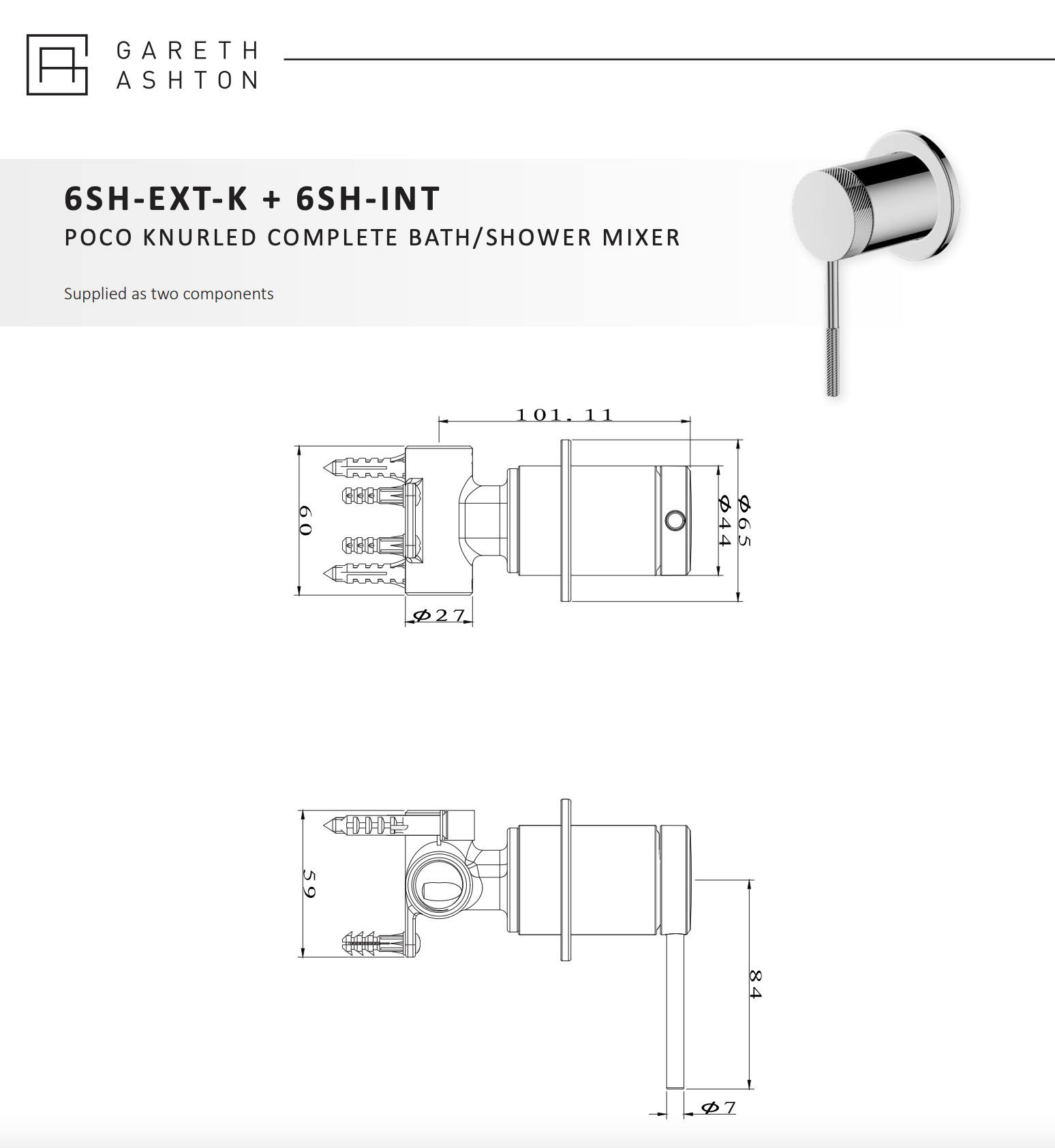 Inspired by the timeless pin-lever design, the Gareth Ashton Poco Knurled Shower Mixer in Brushed Brass features a refined knurled pattern seamlessly rolled into its surface. This elegant tapware combines classic style with modern craftsmanship, offering both visual appeal and precise control for a sophisticated bathroom experience.