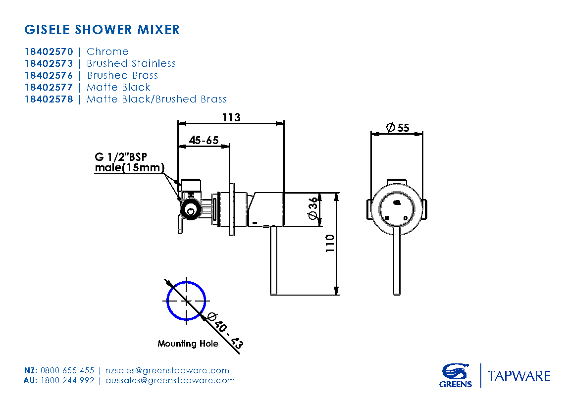 Gisele is the epitome of modern elegance. The artfully engineered range showcases beauty through simplicity, emphasised by the clean unobtrusive lines. All Gisele mixers are packaged with both a pin lever and non-pin lever handle options. Minimum Water pressure for satisfactory operation: 150kPa Maximum Water pressure: 500kPa Maximum hot water temperature: 70ºC If the Water temperature exceeds 70ºC an approved Tempering Valve must be fitted. The flow rate of the sink and basin mixers has been rated under the Australian and NZ Water Efficiency Labeling Scheme (WELS).