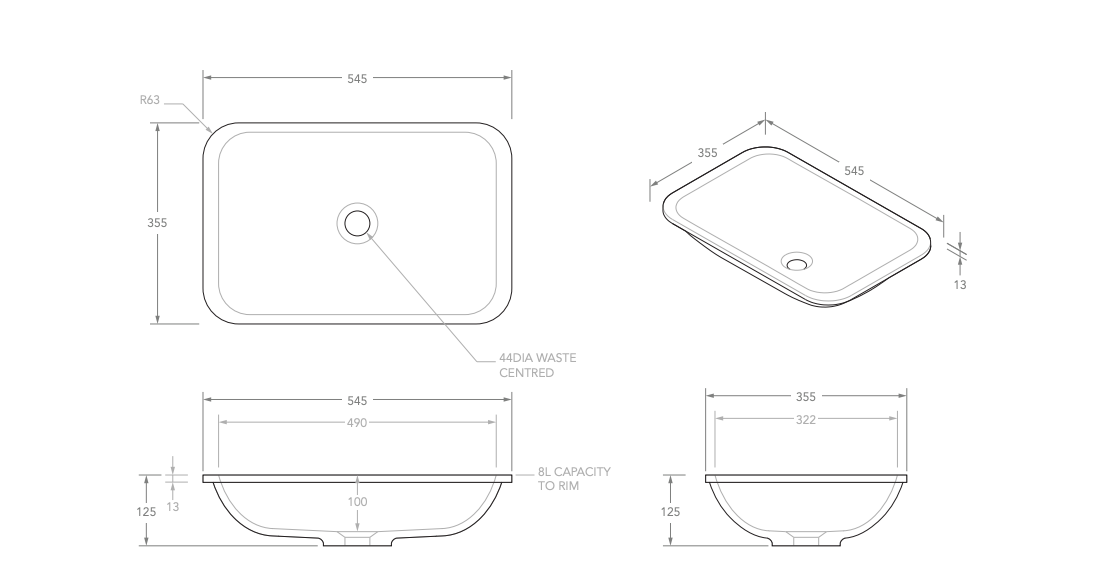Dimensions: 545mm (L) x 355mm (W) x 125mm (H)