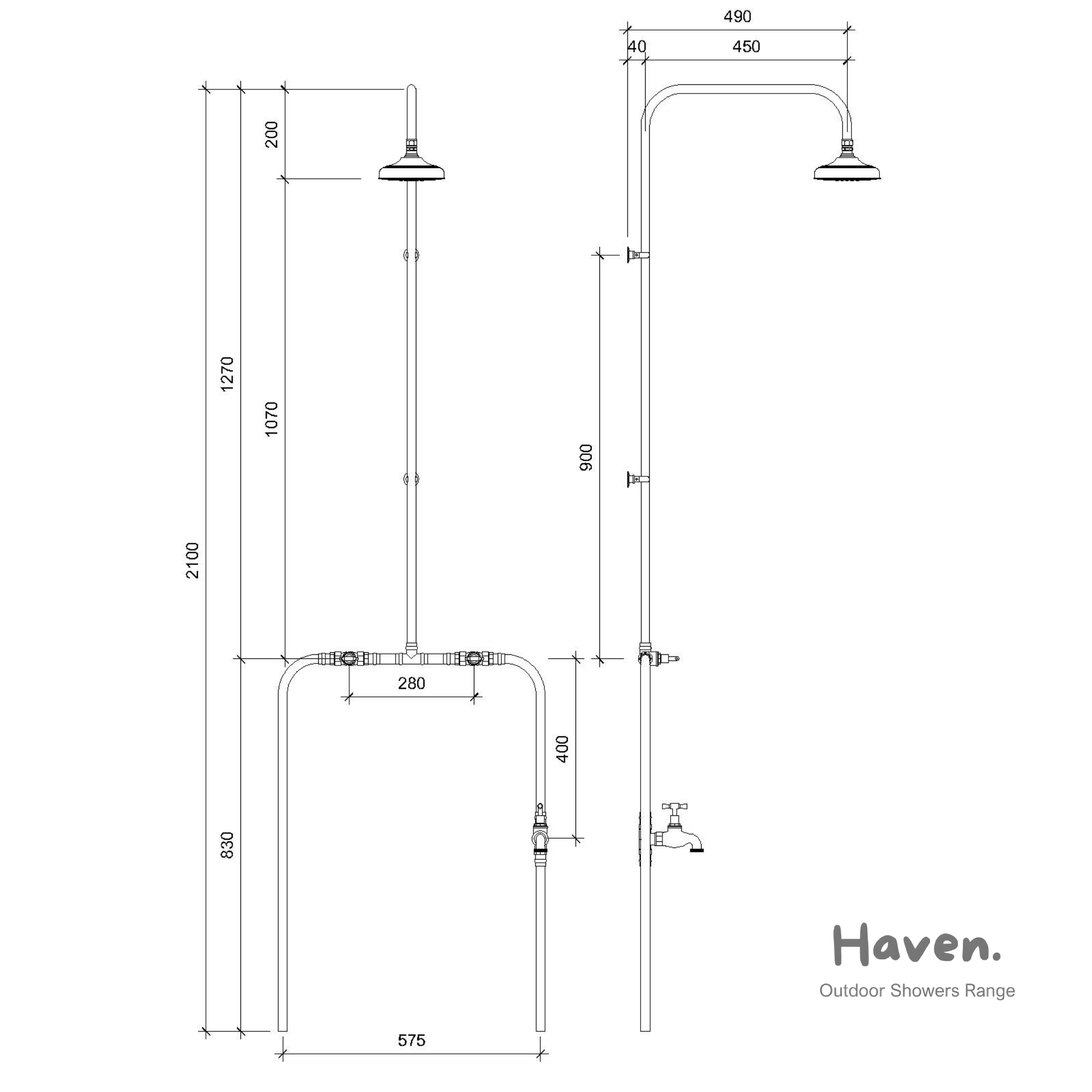 Haven Brass Copper Outdoor Shower Hot & Cold Kit