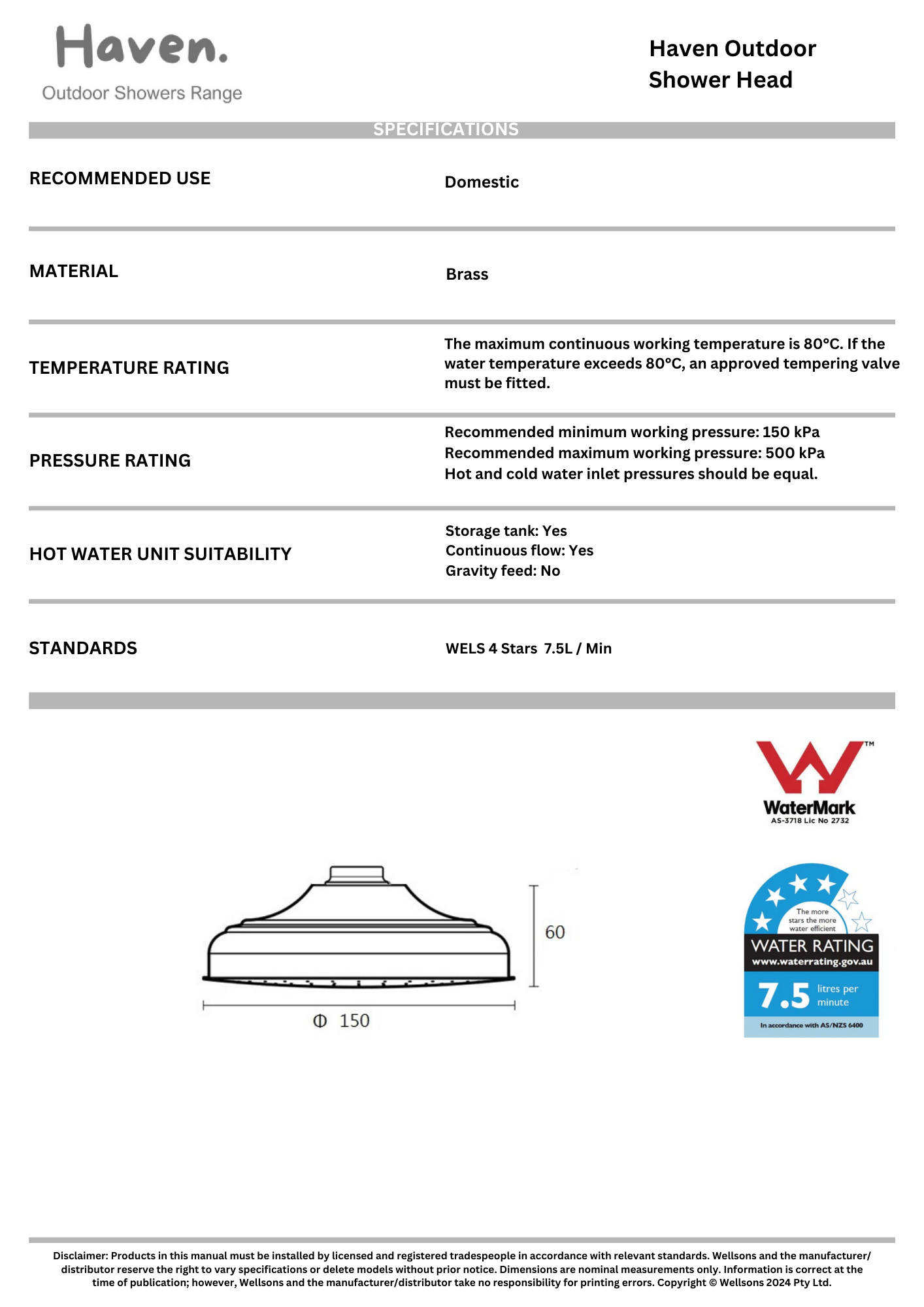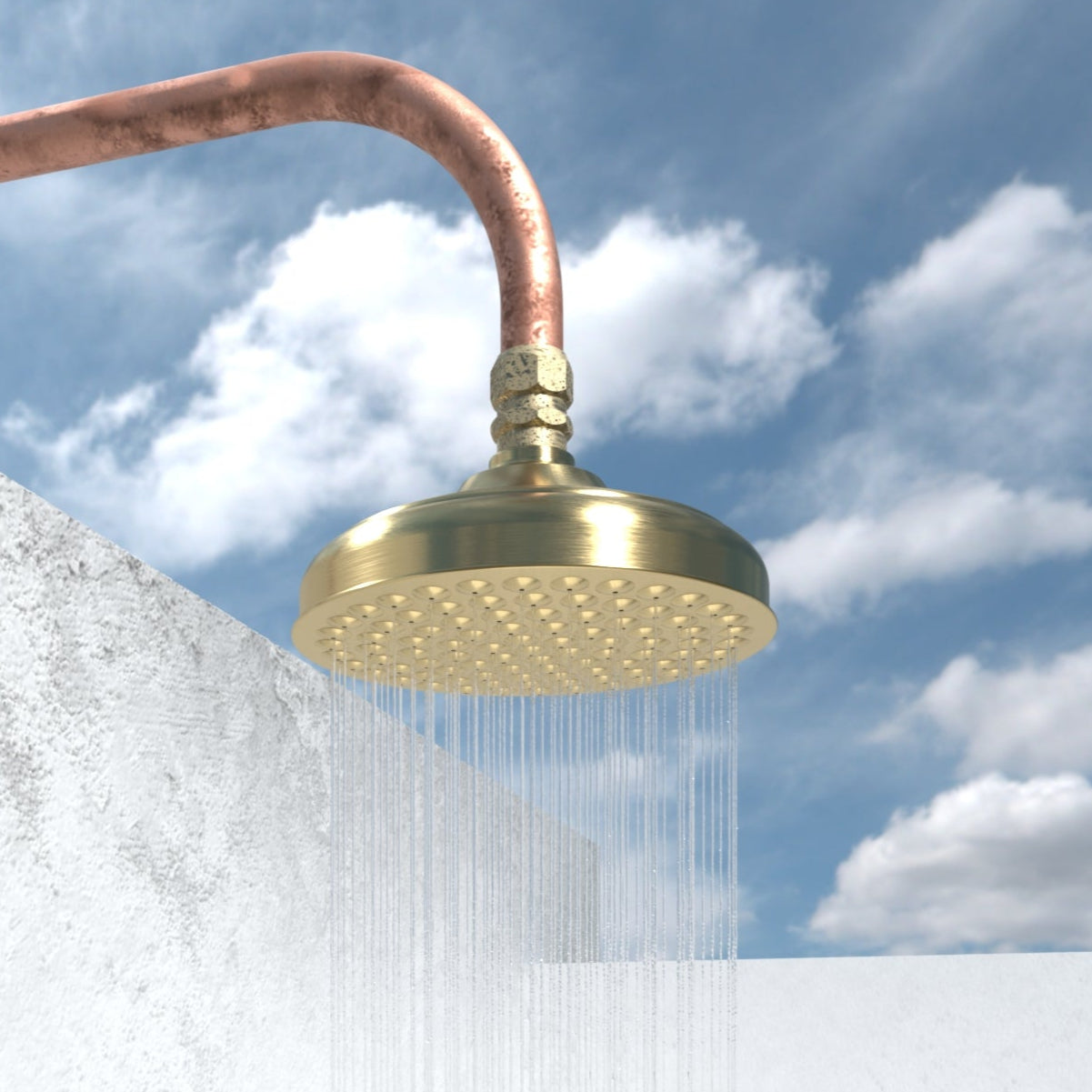 Elevate your outdoor bathroom or pool shower with this premium brass shower head, designed in Australia for durability and style. Perfect for exposed copper beach showers or vintage-inspired spaces, it meets Australia’s strict WELS and Watermark Certification standards for quality and efficiency.