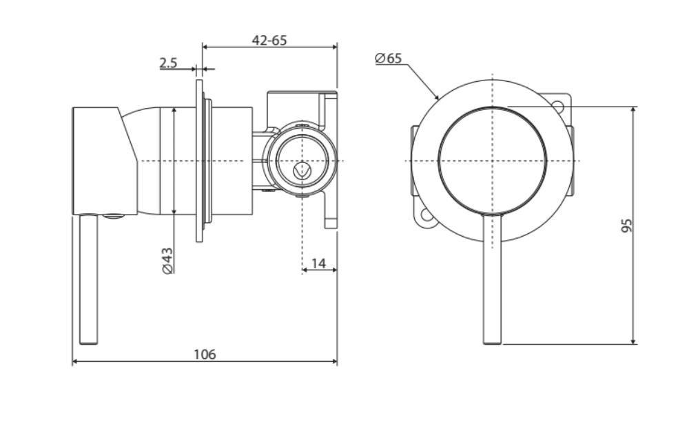 • Round, pin lever handle