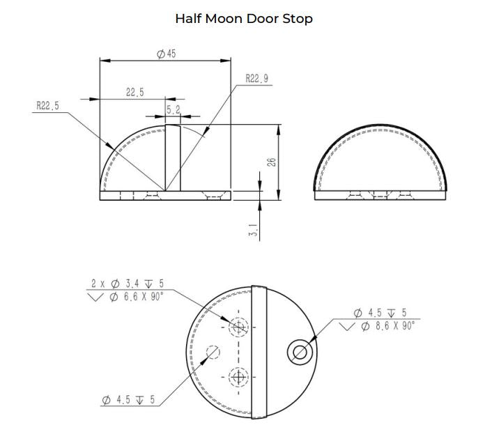 Our half moon door stops are available in both Satin Brass & Matt Black. Featuring a locating pin for added strength and ease of installation, as well as a rubber stopper to protect the face of the door.