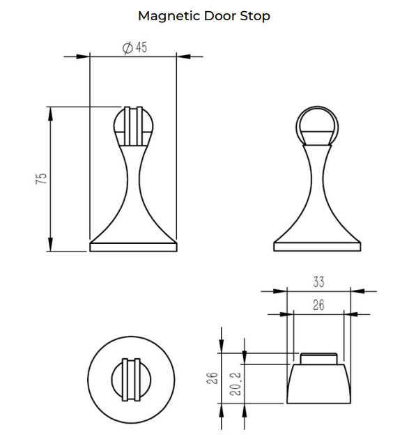 Both stylish and functional, our magnetic door stops also act as a hold open device for your doors. By using a magnetic catch and spring loaded magnetic receiver, this durable door stop will not only protect the doors from slamming open but also hold the door in place. Great for carrying in the shopping, high traffic areas or areas where the wind may slam your doors shut.