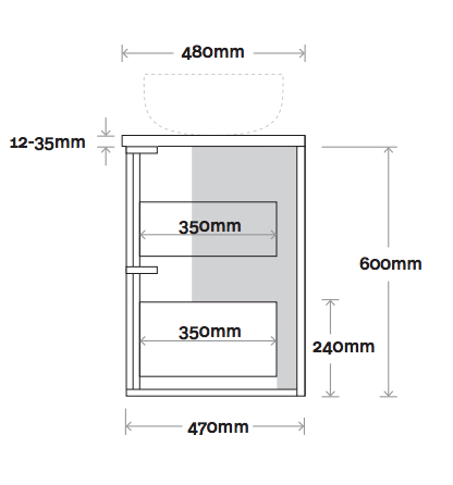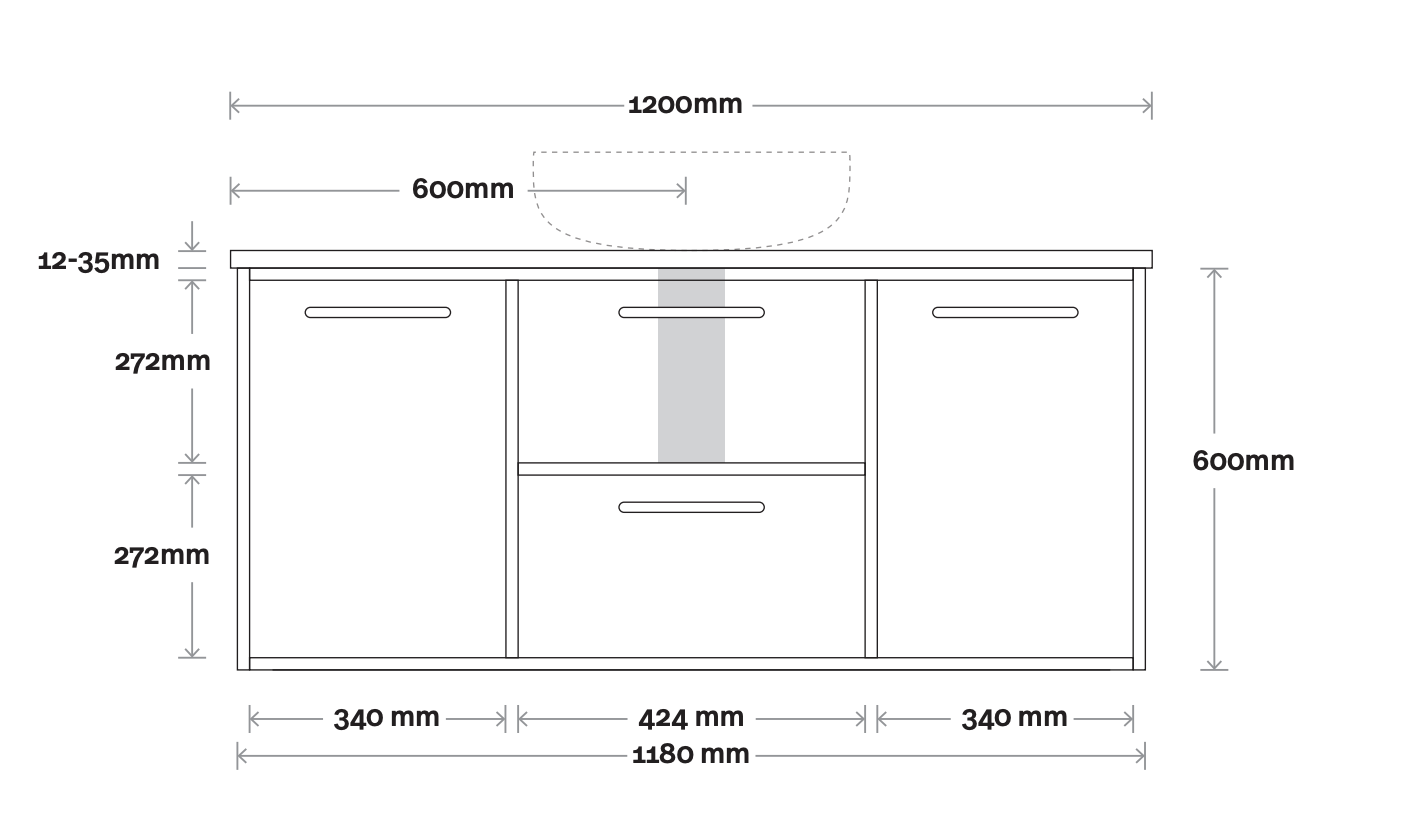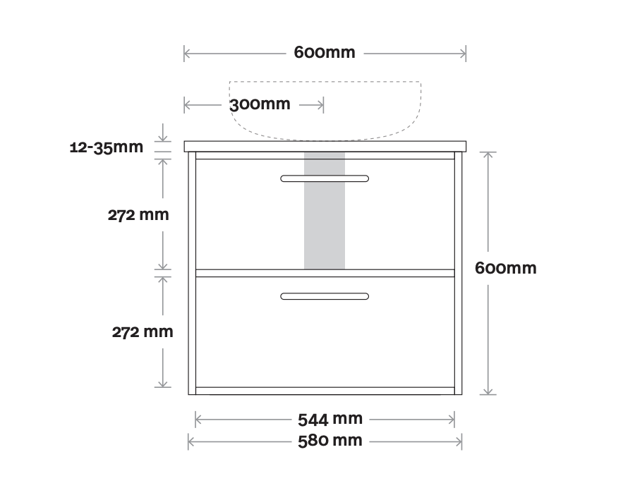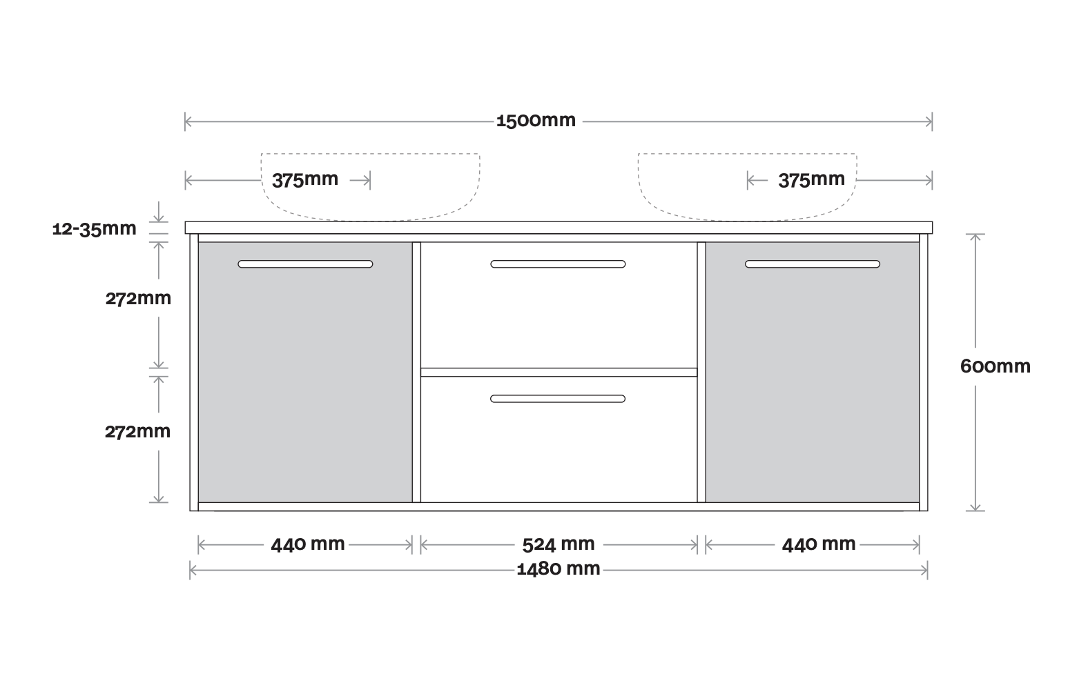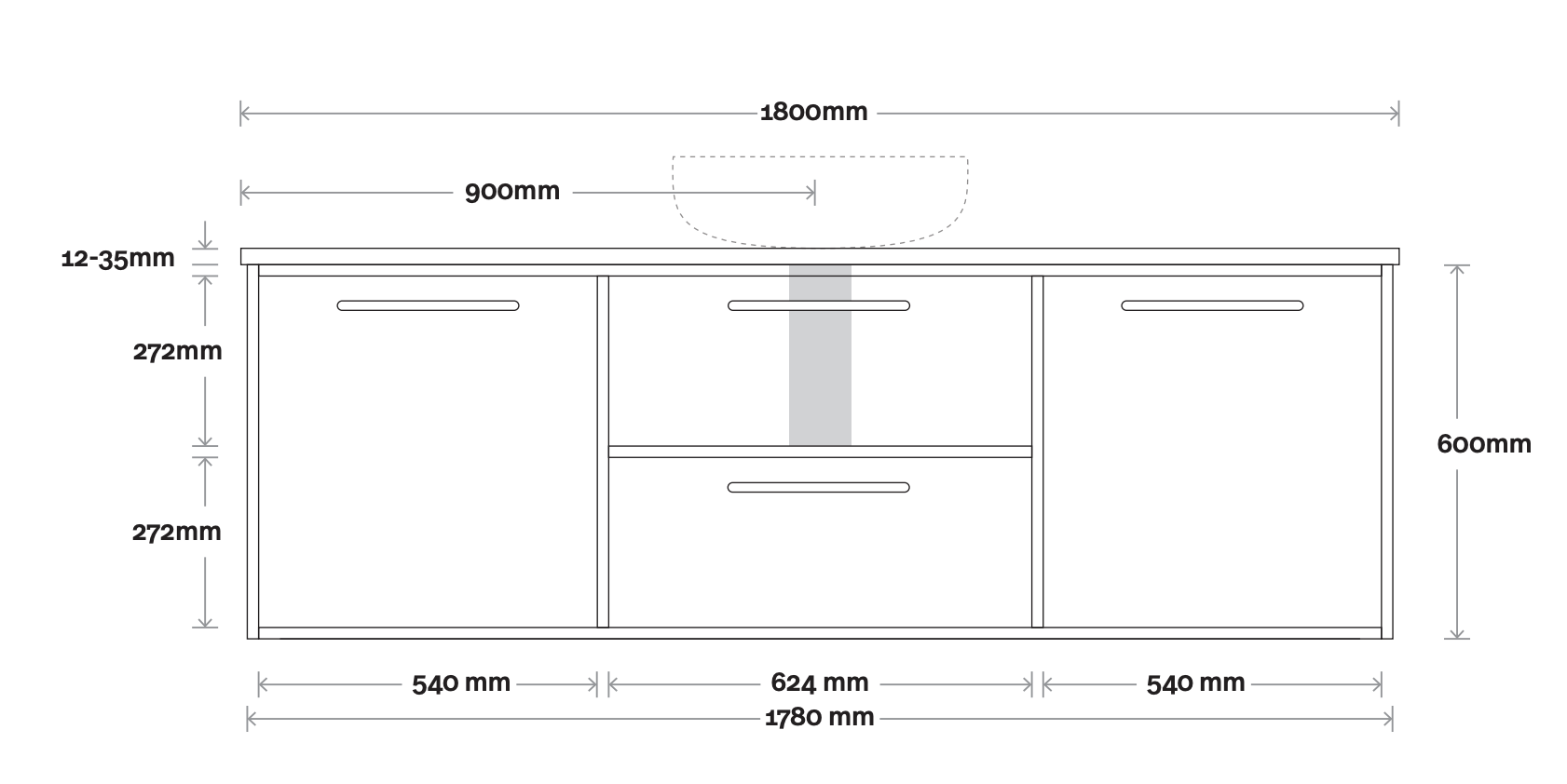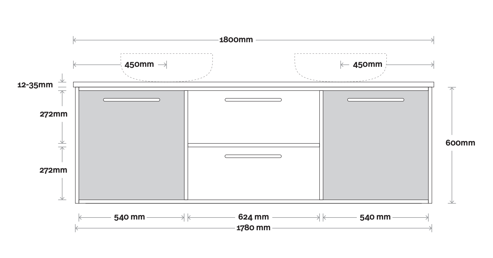 • Palm Wall Hung Vanity is available in 600mm, 750mm, 900mm, 1200mm, 1500mm and 1800mm