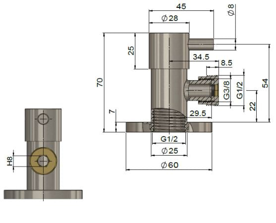 - Stainless Steel Construction with Brass Reducer for the outlet from 1/2" to 3/8"