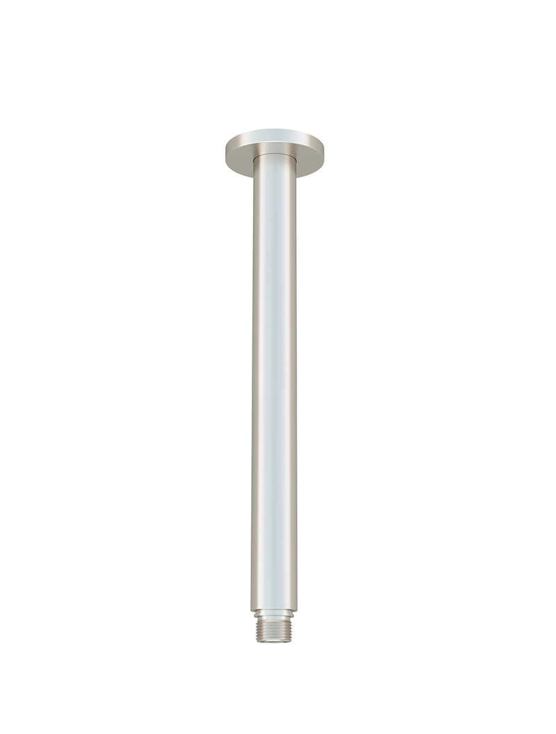 This Round Brushed Nickel Ceiling Arm is crafted with a solid brass body, has a height of 300mm and is designed to support a round rainfall shower head with a PVD coating.