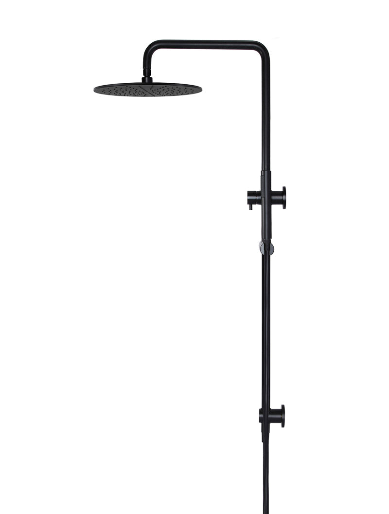 This Matte Black Round Shower Rail allows users to quickly and easily switch between the overhead shower and the hand shower with a single twist of the integrated diverter, giving them precision control for close-up cleaning.