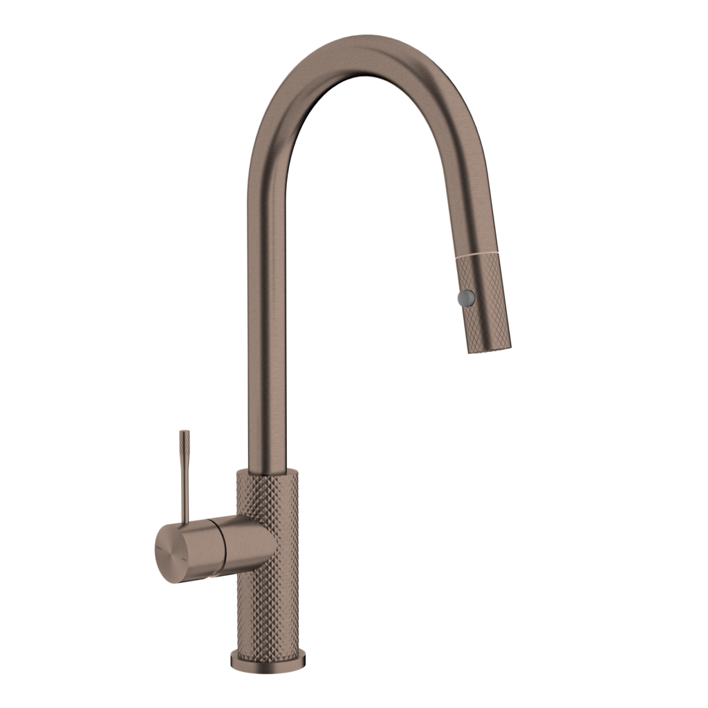 Introducing Nero's Opal Pull Out Sink Mixer with a luxurious brushed bronze finish. The signature multi-faceted texture adds depth and visual experience to any home, complimented by the sleek and stylish design of the Opal collection. Enjoy reliable function with the reputable Neoperl aerators. Make a statement with this sophisticated piece.