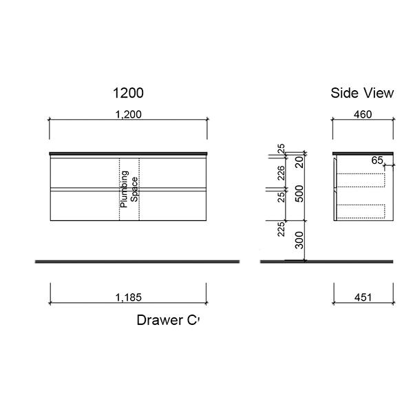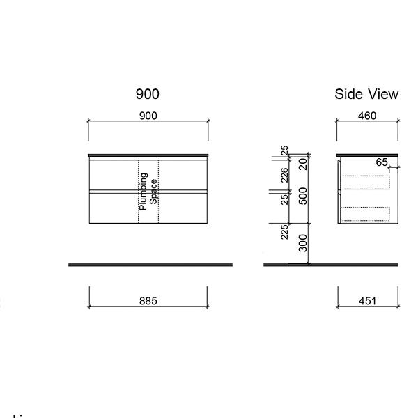 • Vanity is available in 750mm, 900mm, 1200mm, 1500mm and 1800mm options