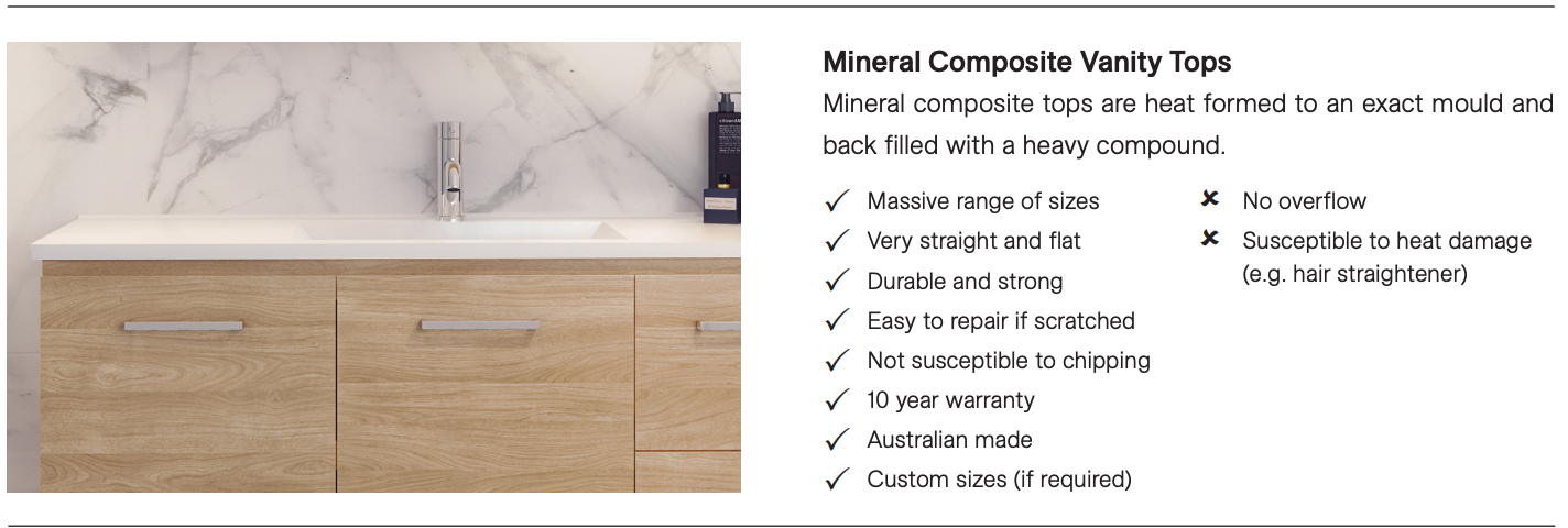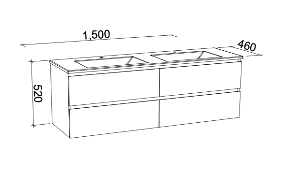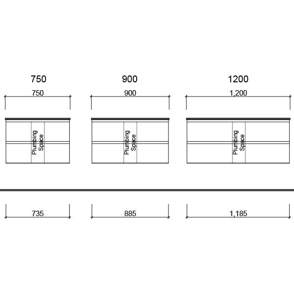- Vanity is available in 600mm, 750mm, 900mm, 1200mm, 1500mm and 1800mm options